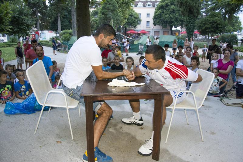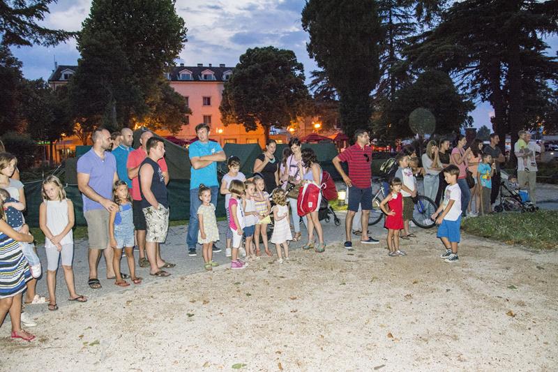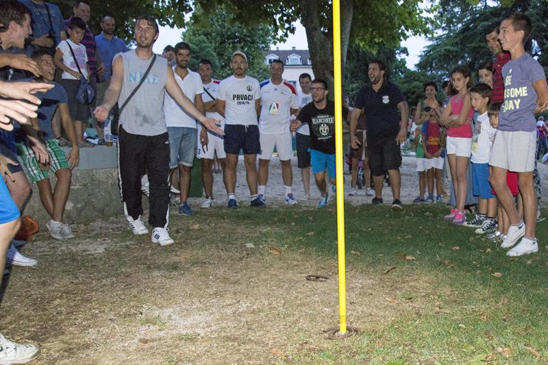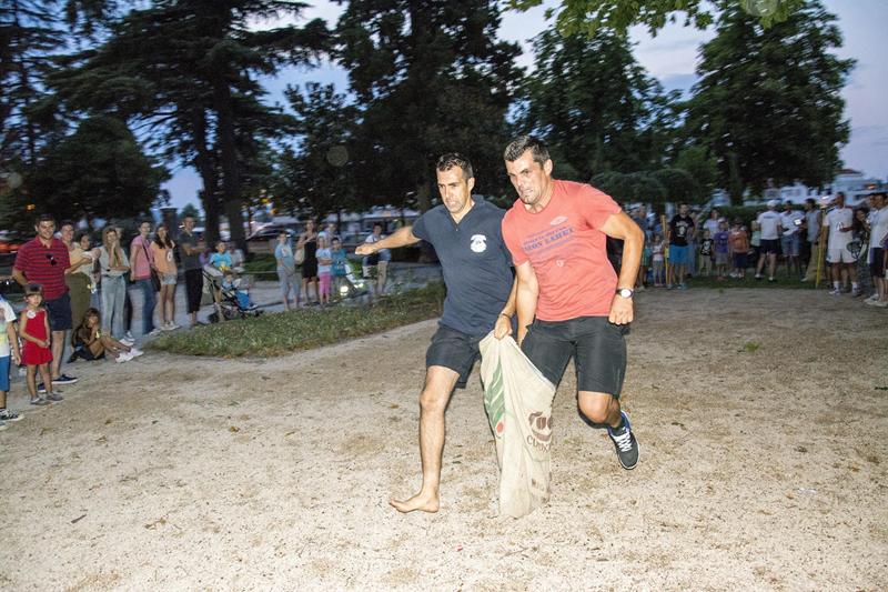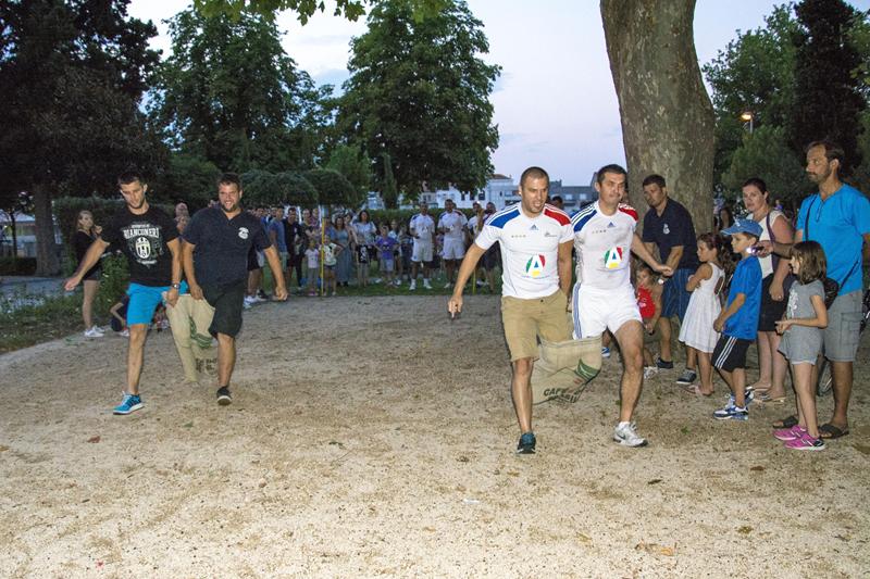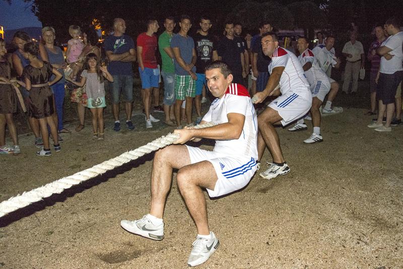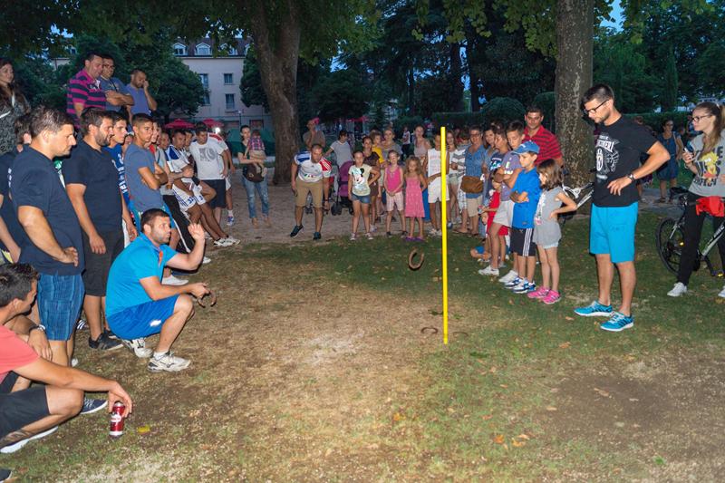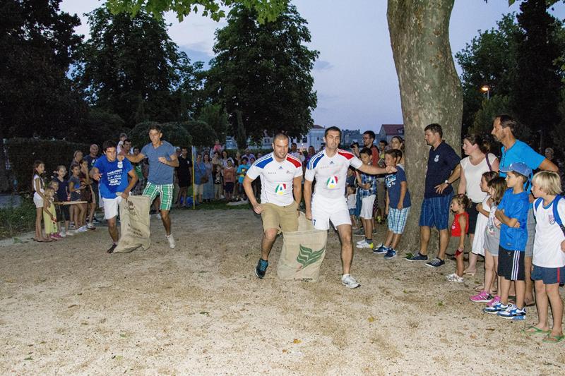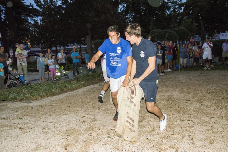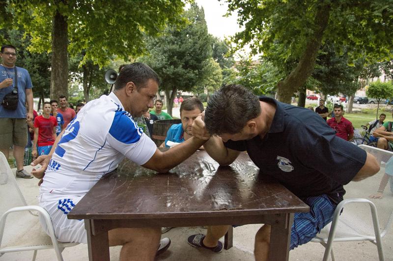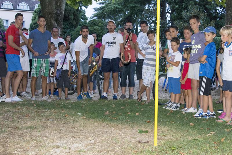 8.8.2015. - Jučer je kiša omela održavanje viteških igara za djecu u Gradskome parku, ali su predvečer održane igre za odrasle, koji su se natjecali i vađenju jabuka iz maštela, obaranju ruke, bacanju potkove, trčanju u vrećama i potezanju konopa.
