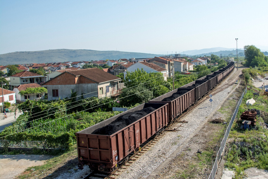 26.8.2015. - Jutros smo se u 9:20 slučajno zatekli na nadvožnjaku kada je ispod njega prolazio teretni vlak s vagonima punima antracita iz Ploča. Vlak je vozio sporo pa nismo zamijetili (vidljivo) prašenje, no pitanje je ima li ga (i koliko) kada na otvorenome vozi brže te bi li vagoni trebali biti pokriveni.