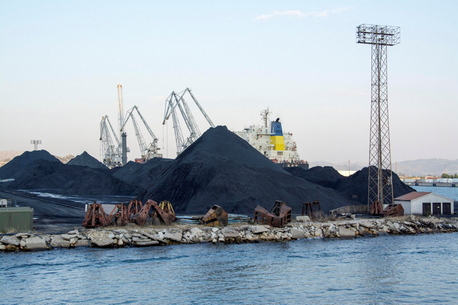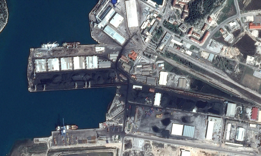 Brda antracita (ili njegovih ostataka – ostatci antracita, ili rudarski otpad koristi se u proizvodnji električne energije u termoelektranama) snimili smo u Luci Ploče na dan ovogodišnjega Maratona lađa. Godine 2008. u siječnju snimili smo s Male Rujnice oblak antracitske prašine nad 12 kilometara udaljenim Pločama, koji je vjetar nosio na jugoistok. Oblak je bio puno veći nego što se to čini na fotografiji jer se crna prašina dobro vidi samo iza svijetle nebeske pozadine.