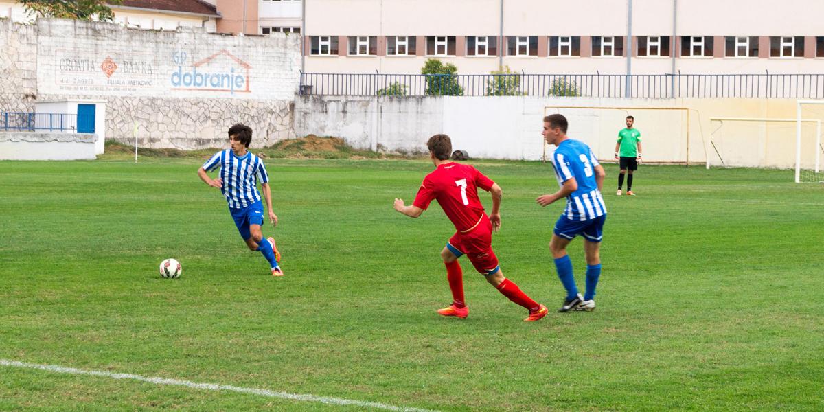 Domaćini su većim posjedom lopte stalno prijetili gostima. U 43. minuti Brečić loptu ubacuje u gužvu pred protivnička vrata, u čemu se Bubalo najbolje snalazi i postiže pogodak za vodstvo domaćina.