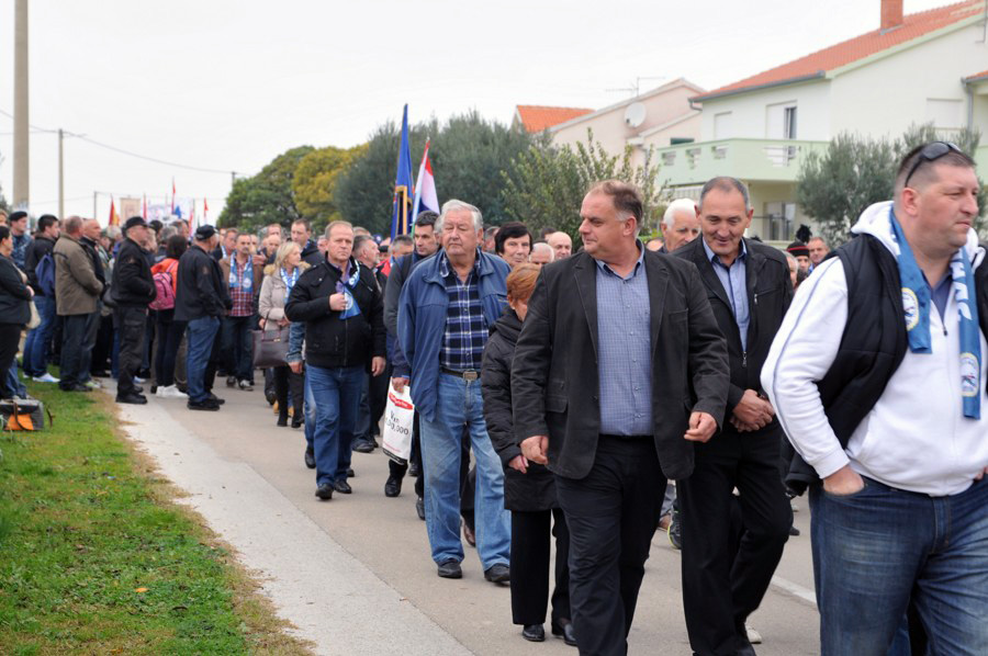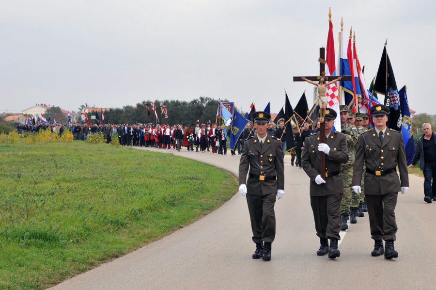 Na kraju obilježavanja obljetnice stradanja održana je hodnja do spomen-obilježja na mjesnome Groblju sv. Luke. Na samome početku hodnje kolonu je preletio zrakoplov MIG-21. Brojna izaslanstva predstavnika državne vlasti, županija, gradova i općina, braniteljskih udruga, među kojima su bile i udruge HVO-a, srednjih škola, sportskih organizacija i drugih položila su vijence i zapalila svijeće pred Središnjim križem pokraj spomen-obilježja stradalima Škabrnjanima.