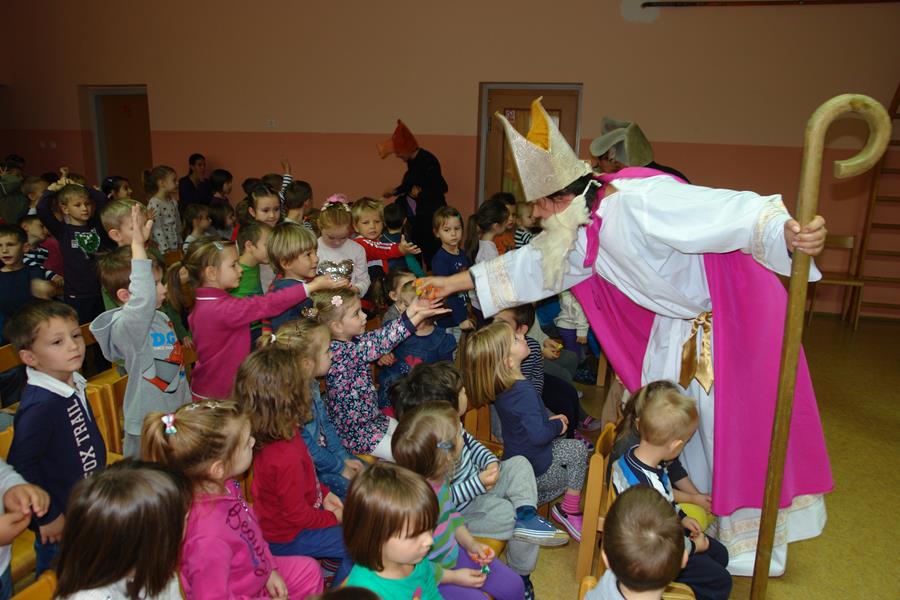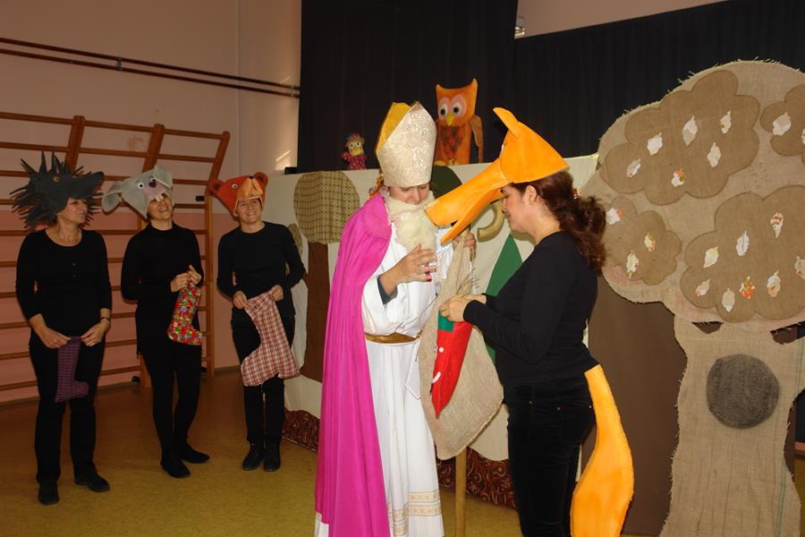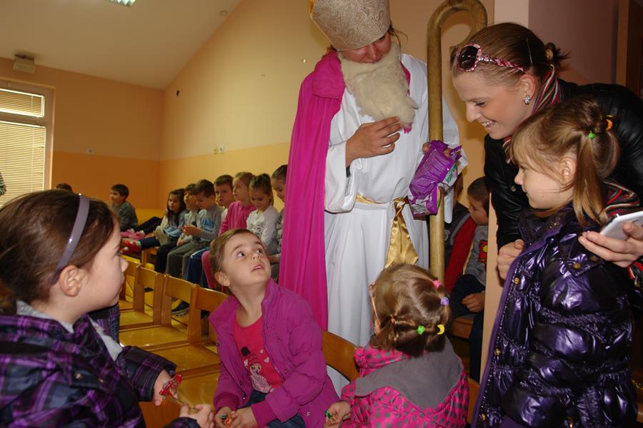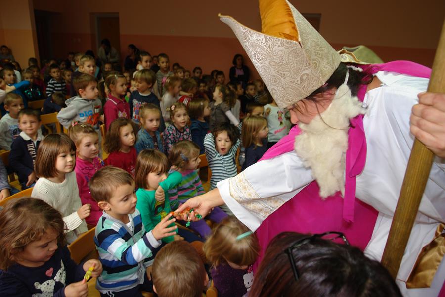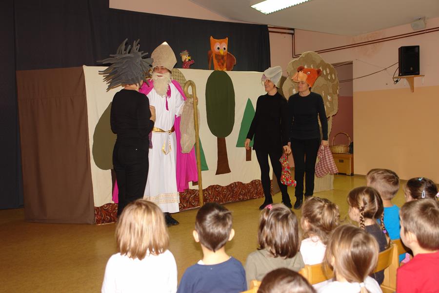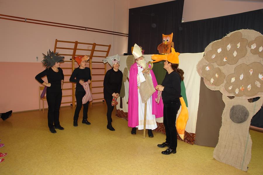 Veselom i poučnom pričom, u kojoj su glavni likovi šumske životinje koje iščekuju dolazak sv. Nikole, tete su uspjele u potpunosti zaokupiti pažnju djece koja su ih nagradila pljeskom, bučnim i iskrenim kako to djeca najbolje znaju. Na kraju predstave sv. Je Nikola mališanima podijelio bombone.