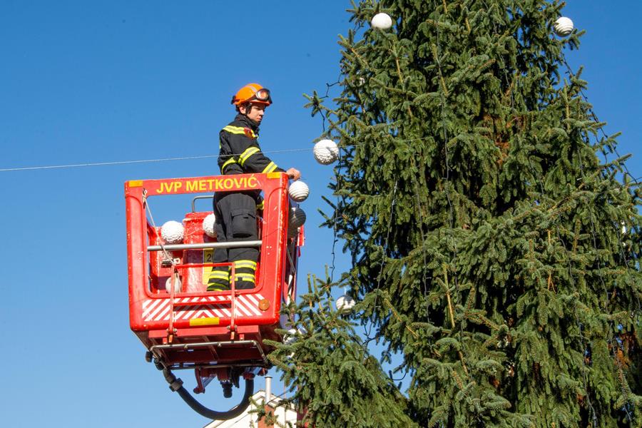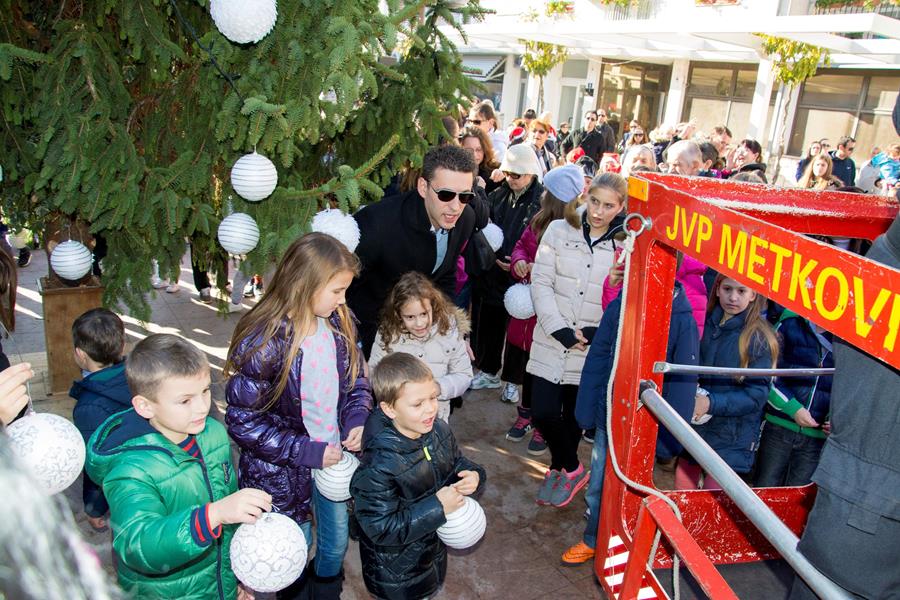 5.12.2015. - Uz prigodan program danas je na Trgu kralja Tomislava ukrašena božićna jela koju je Gradu darovao g. Ivan Matić. U programu je sudjelovao Zbor OŠ don Mihovila Pavlinovića koji vodi Ljupka Sršen Gutić, a jelu su uz pomoć Ivice Ivaniša Kulije i vatrogasca Joška Cvitića ukrašavala djeca iz DV Metković, DV Leut i DV Mali Isus, kojima su se pridružila djeca iz dviju metkovskih osnovnih škola i mnoga druga koje su roditelji doveli na Trg te štićenici Centra za radnu terapiju.