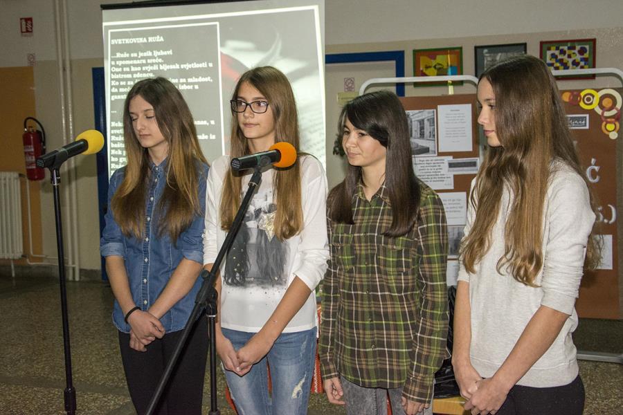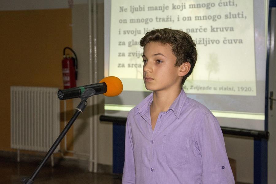 Program su vodile Ana Mustapić i Marta Gabrić, a Ujevićeve stihove kazivali su učenici od 5. do 8. razreda: Ana Mustapić, Marta Gabrić, Elena Perdeda, Rita Gabrić, Cvijana Cvitanović, Tamara Matuško, Lana Bebić, Ana Putica, Marko Volarević, Karla Erjauc, Leona Gnječ, Katarina Pratežina, Lea Tomas, Korina Raguž, Martina Bulum, Mihaela Sulić, Mia Ćubela, Veronika Barjaktarović, Andreja Margeta, Dubravka Mustapić, Marija Dominiković, Mia Sršen, Lana Bunoza, Marija Planinić, Matej Horvat.