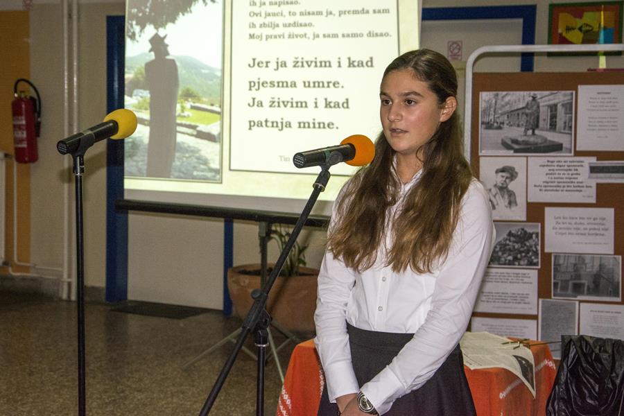 7.12.2015. - Osnovna škola Stjepana Radića prošloga je petka upriličila književnu večer posvećenu Tinu Ujeviću, tj. obilježavanju 60. obljetnice njegove smrti, što su je pripremile učiteljice hrvatskoga jezika profesorice Tatjana Hazirović-Juračić i Ines Vukoja, koja je s učenicima pripremila prigodan pano.