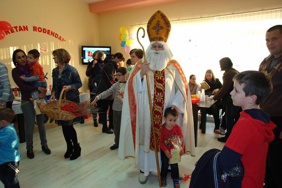 Iščekujući dolazak sv. Nikole djeca su zaigrano istraživala razne sprave koje su im se u igraonici našle na raspolaganju, a nakon što je stigla obavijest da siže sv. Nikola uskoro igra je brzo prekinuta. Djeca su se znatiželjno okupila upirući pogled u vrata očekujući dolazak najdražega im sveca, a oni najmanji potražili su sigurnost u krilu roditelja.