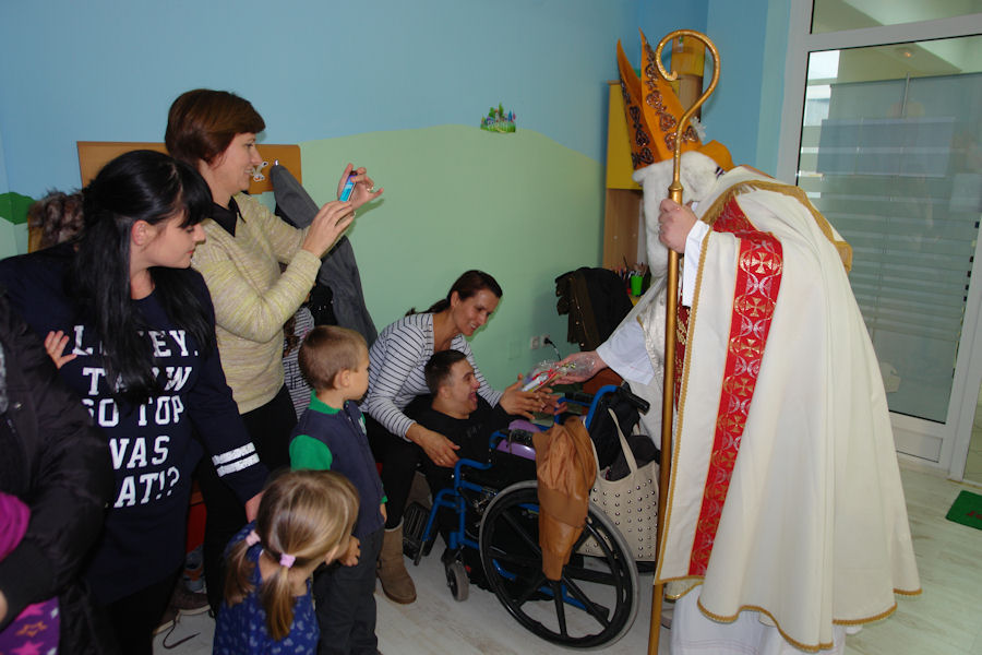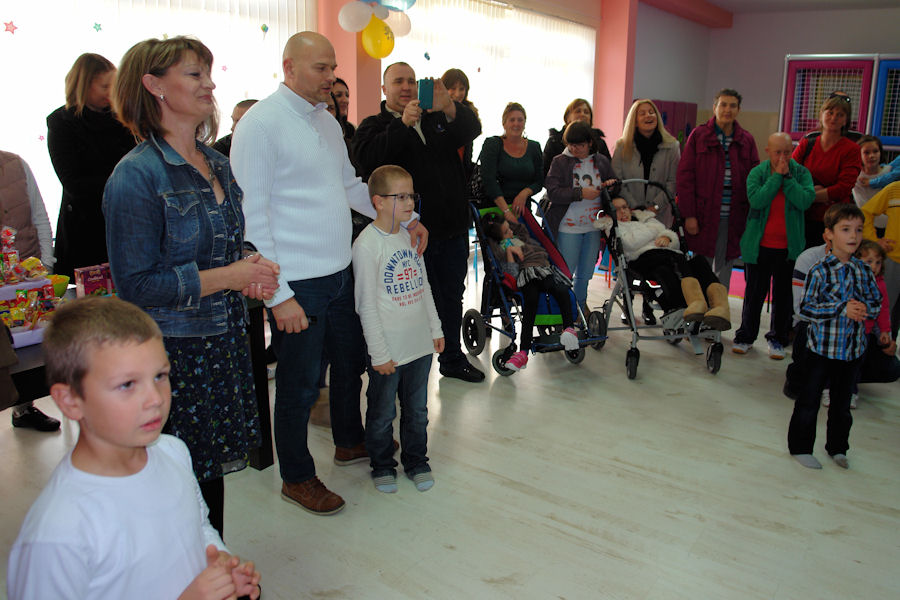 Metković, 8.12.2015. - Sveti Nikola obradovao je i članove Udruge cerebralne i dječje paralize doline Neretve Leptirići, a darove najmlađima, ali onima nešto starijima, podijelio je u prostorijama Dječje igraonice Zvrk.