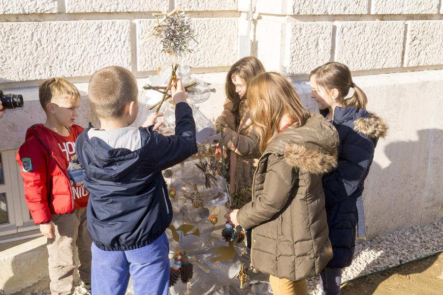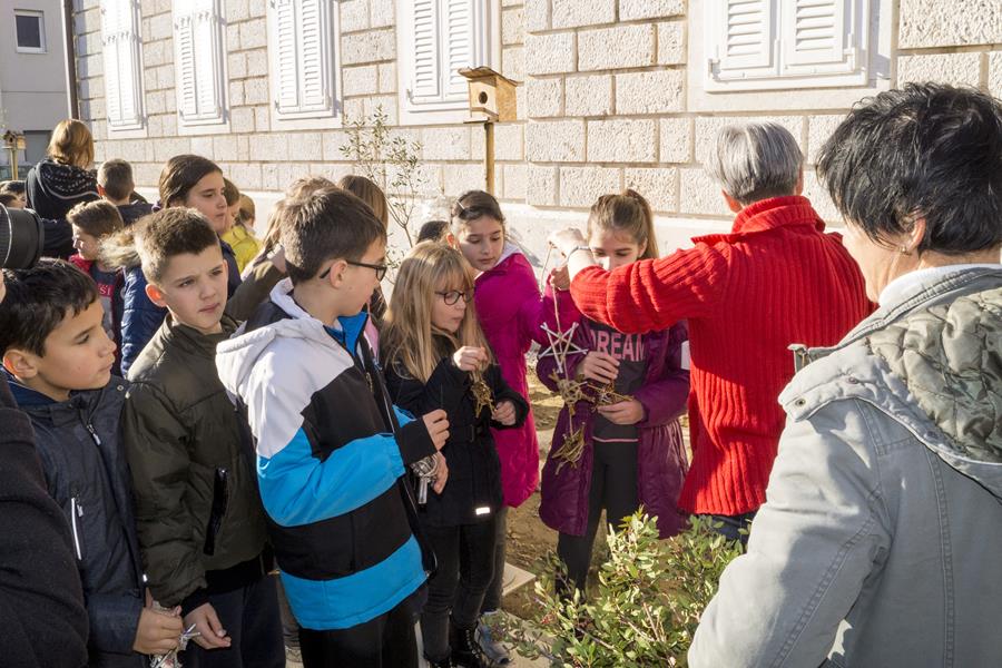 12.12.2015. - Jučer su u vrtu Prirodoslovnoga muzeja Metković učenici prvih i trećih razreda OŠ Stjepana sa svojim učiteljicama postavili jaslice i okitili jelu od prirodnih materijala. Vrt će tijekom sljedećih dana biti otvoren za posjetitelje.
