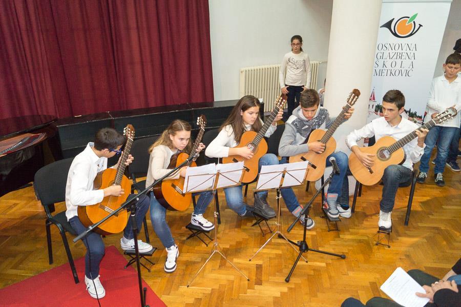 Poslije pozdravne riječi ravnatelja Zvonka Kneževića njegovi su učenici od drugoga do šestoga razreda izveli 29 kompozicija. Koncert je zaključio Dječji zbor OGŠ Metković koji je otpjevao Raduj se svijete, Tiho pada večer i u pratnji harmonikaškoga kvarteta Bijeli Božić. Program su pripremili nastavnici: Karmen Stojić, Slađana Knežević, Marija Bukovac, Romeo Herceg, Javorko Popović, Marija Berljak, Zvonko Knežević, Erna Čizmić Rebić, Ankica Dugandžić, Josipa Markota, Marija Jerković, Mirko Violić i Robert Sivrić.