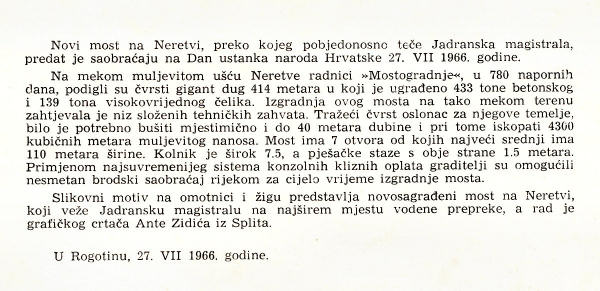 17.8.2006. - Nije da nismo znali, ali taj 27. srpnja jednostavno nam je promaknuo. Na taj dan, ravno prije 40 godina, svečano je pušten u promet novi most na Neretvi kod Rogotina.