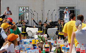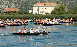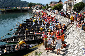 U organizaciji Restorana "Lopoč", Udruge lađara Neretve i agencije "Easy travel" u Opuzenu na Maloj Neretvi kod mosta danas je turiste čekalo trideset lađa u kojima su trebali odveslati dionicu od Opuzena do Kule Norinske. Sve je počelo dočekom na opuzenskoj pjaci gdje su turistima ponuđeni tradicionalni neretvanski proizvodi i hladni napitci, a zabavljala ih je opuzenska mješovita klapa i mažoretkinje iz Mostara. Sve u svemu odlična ideja za iskorištavanje turističko-gastronomskih potencijala donjoneretvanskog kraja. I sve bi bilo u redu da ljudi iz agencije "Easy travel" (dovode turiste iz istočnoeuropskih zemalja) nisu zabranili snimanje. Tu su najgore prošli kolege sa HTV-a i Nove, dok smo se mi sa digitalnim fotoaparatima prerušili u poljske i češke turiste i snimali. Start maratona podsjećao je na onaj pravi samo što nije bilo one borbenosti kao pod mostom u Metkoviću. Sve posade su na kraju uspjele doveslati do Kule nakon čega su na lađe montirane pente pa se tristotinjak turista odvezlo Norinom do mjesta za piknik gdje im je priređen ručak. Donosimo nekoliko fotografija koje smo snimili unatoč strahu od progonstva u Sibir.