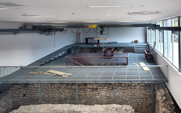 Pogled na Augustej sa rekonstruiranom tribinom Galerija na kojoj će biti izloženi veći kameni nalazi Pogled na Augustej sa rekonstruiranom tribinom Štokovanje kamenih ploča za pločnik radi se ručno Pogledajte usporedne fotografije gradilišta iz travnja 2005 i danas