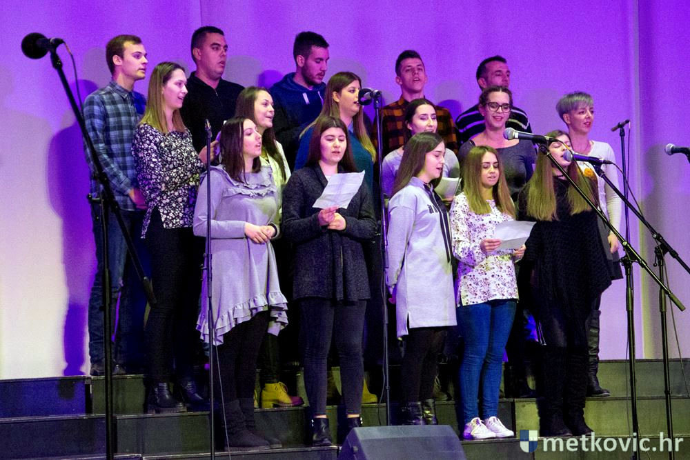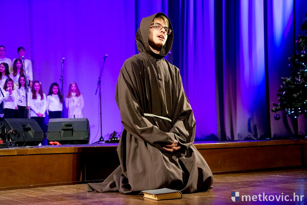 Pred početak, okupljenoj se publici obratio predsjednik Udruge Marijo Jurković, zahvalivši svima koji su došli podržati tu tradicionalnu predblagdansku priredbu. Metkovski kantautor i pjevač Branko Medak prvi je stupio na pozornicu i otpjevao svoje pjesme Repatica i Vukovar, a potom su na nju izašli Pučki pjevači Župe Vidonje, koji su otpjevali tradicionalne pučke napjeve Majko draga, djevice sveta i Padaj s neba. Slijedili su Pučki pjevači Župe sv. Jure iz Desana, koji su otpjevali Gle anđeo Božji.