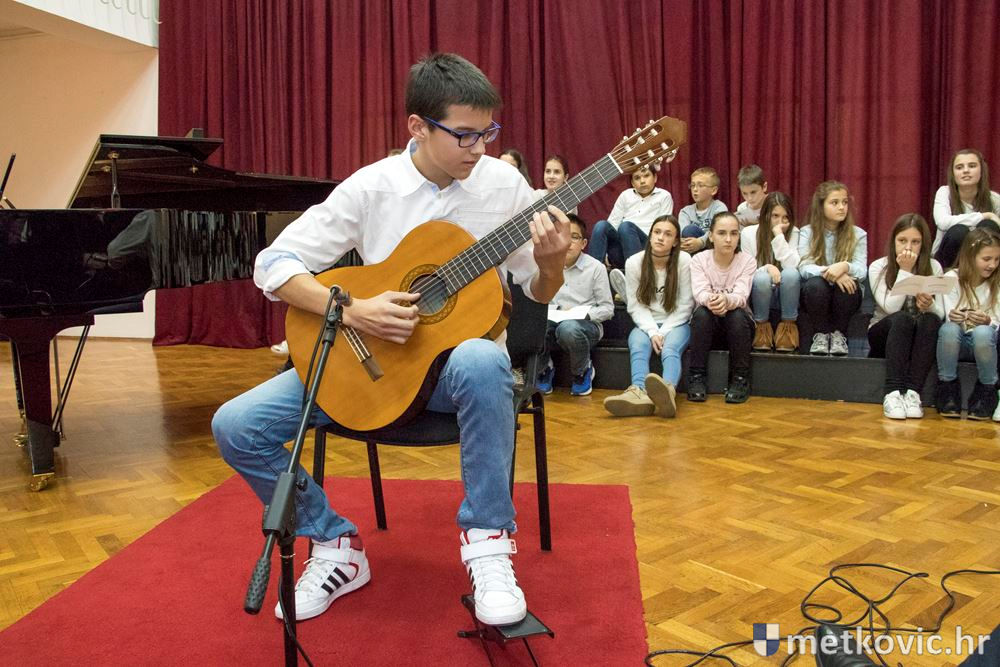 Prigodnim riječima posjetitelje je pozdravio ravnatelj Zvonko Knežević, a potom u s kraćim kompozicijama nastupali mlađi učenici. Kako je koncert odmicao, tako su kompozicije postajale sve zahtjevnije, a na kraju je Školski zbor pod ravnanjem Maje Jerković otpjevao nekoliko božićnih pjesama. Program su pripremili: Slađana Knežević, Karmen Stojić, Marija Bukovac, Romeo Herceg, Josipa Markota, Mirko Violić, Robert Sivrić, Erna Čizmić Rebić, Marija Berljak, Ankica Dugandžić, Javorko Popović, Zvonko Knežević, Marija Jerković i Dragan Gutić.