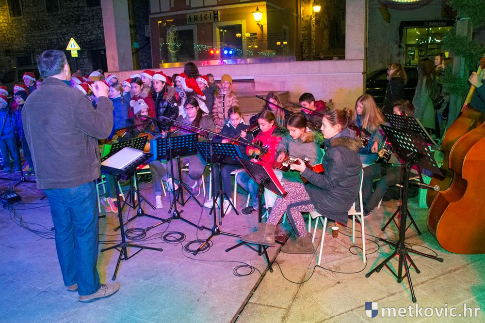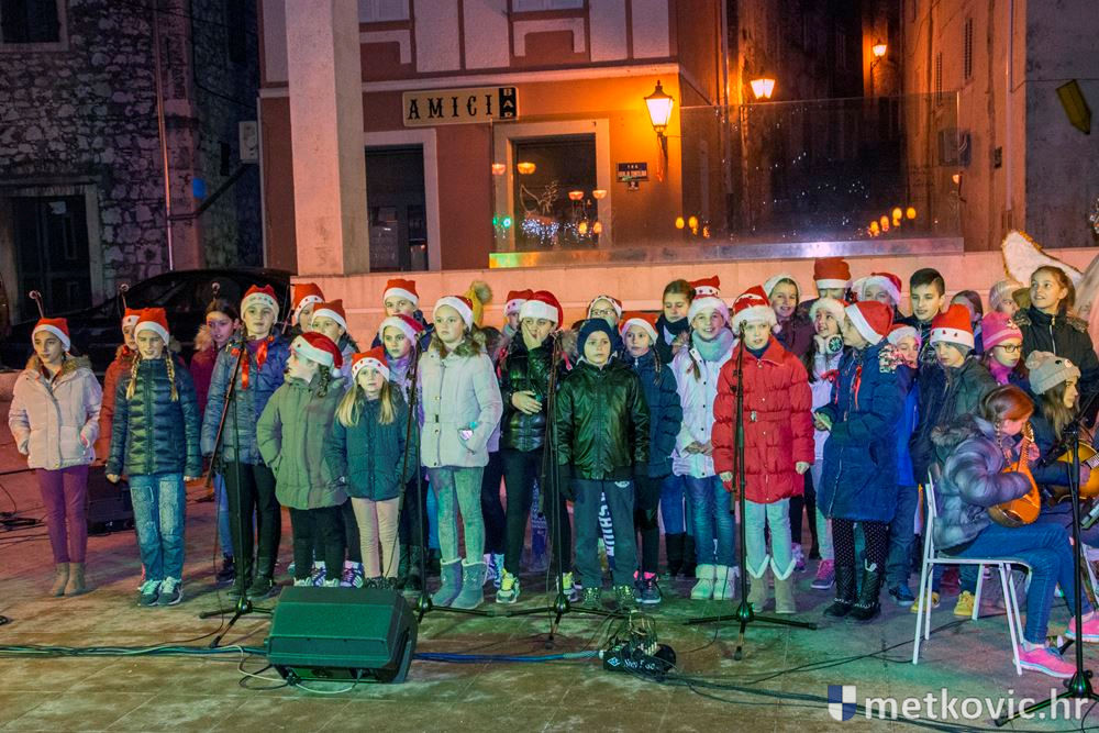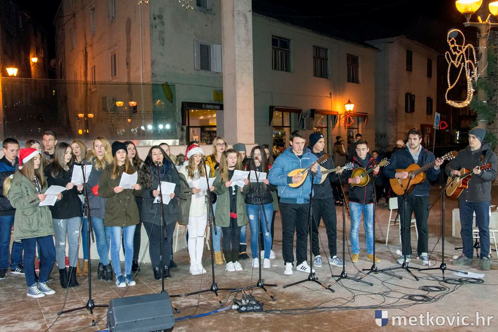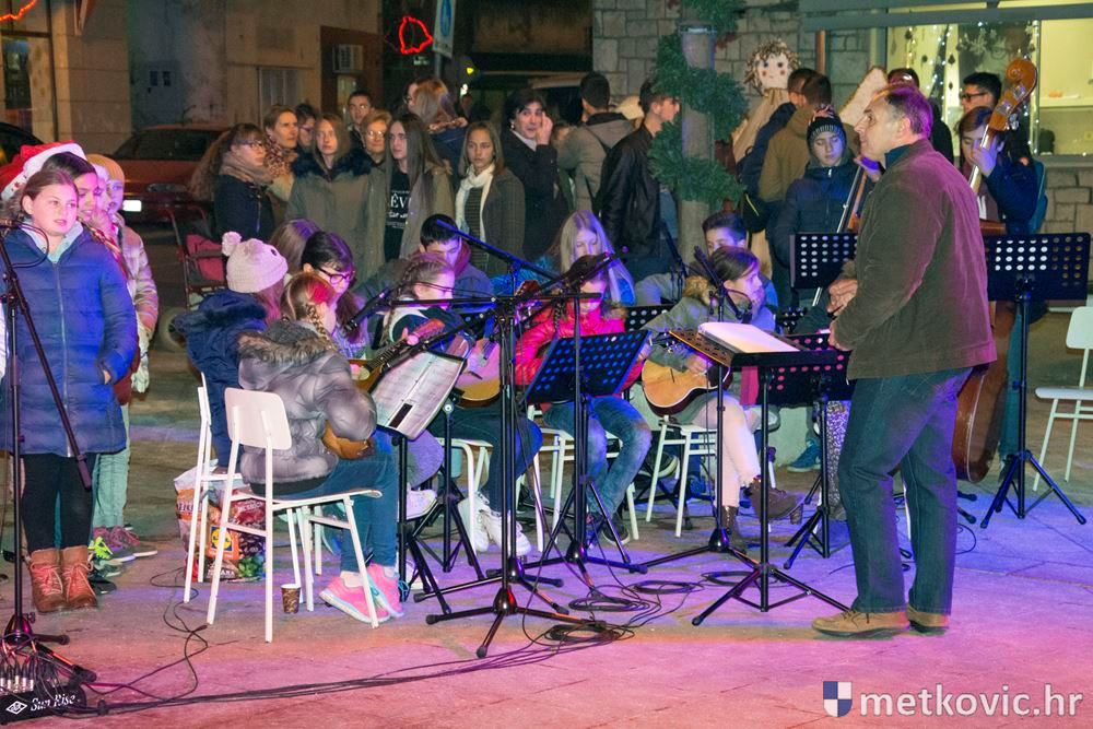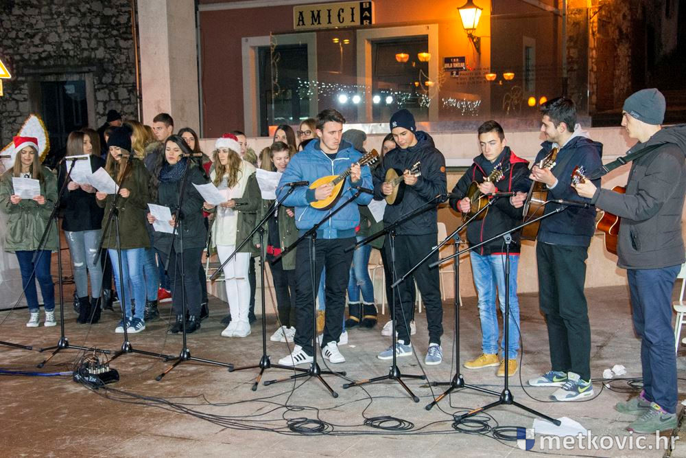 Frontmen i vokalist Glazbenog sastava Versi Nikica Ilić otpjevao je Tri kralja jahahu uz pratnju Mandolinskoga orkestra KUD-a Metković. U nastavku su Nikola Družijanić i Tonća Šiljeg otpjevali Radujte se narodi i Svjetla u noći, a potom je Ivana Sršen recitirala Tajna noći. Zbor i bend mladih Župe sv. Ilije otpjevali su Veseli se Majko Božja, da bi potom uslijedili zborovi osnovnih škola don Mihovila Pavlinovića i Kule Norinske koji su zajedno otpjevali Last Christmas. Zbor OŠ Kula Norinska pod ravnanjem voditeljice Zrinke Boras izveo je još Have yourself a Merry little Christmas. Na kraju su nastupile veteranke KUD-a Metković koje su otpjevale Dobra večer ovem stanu i Dječja skupina KUD-a Metković koja je otpjevala Kolendu iz Zatona. Program su oblikovali Milan Kapović i Danijela Baćilo.