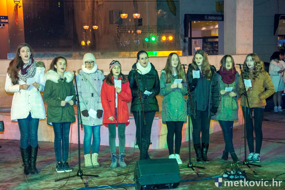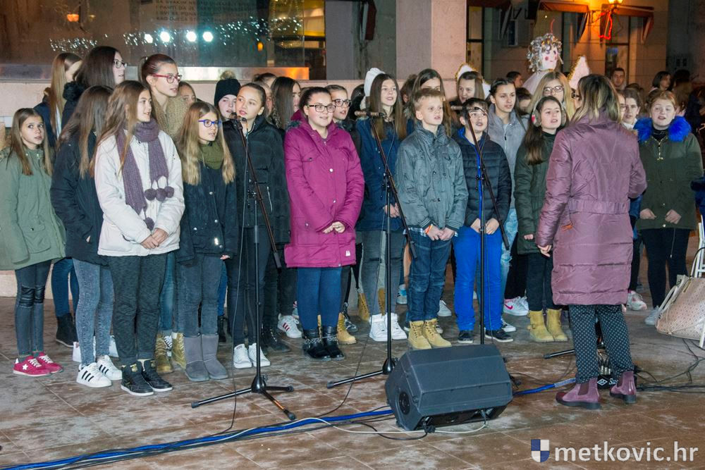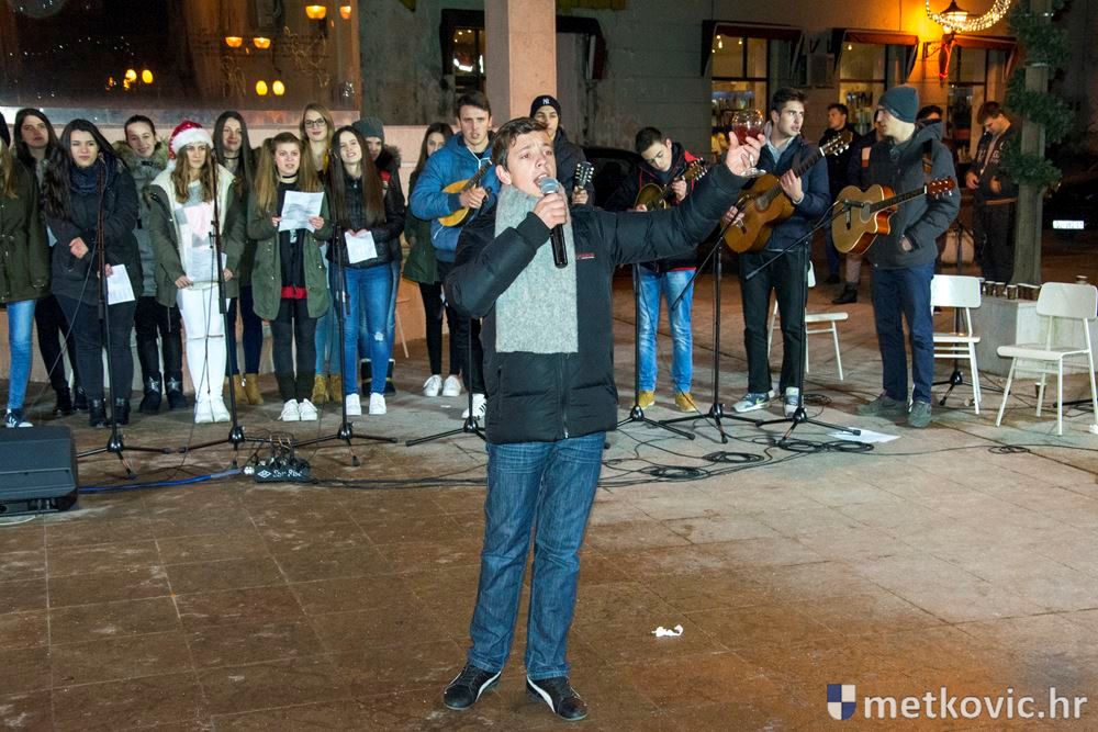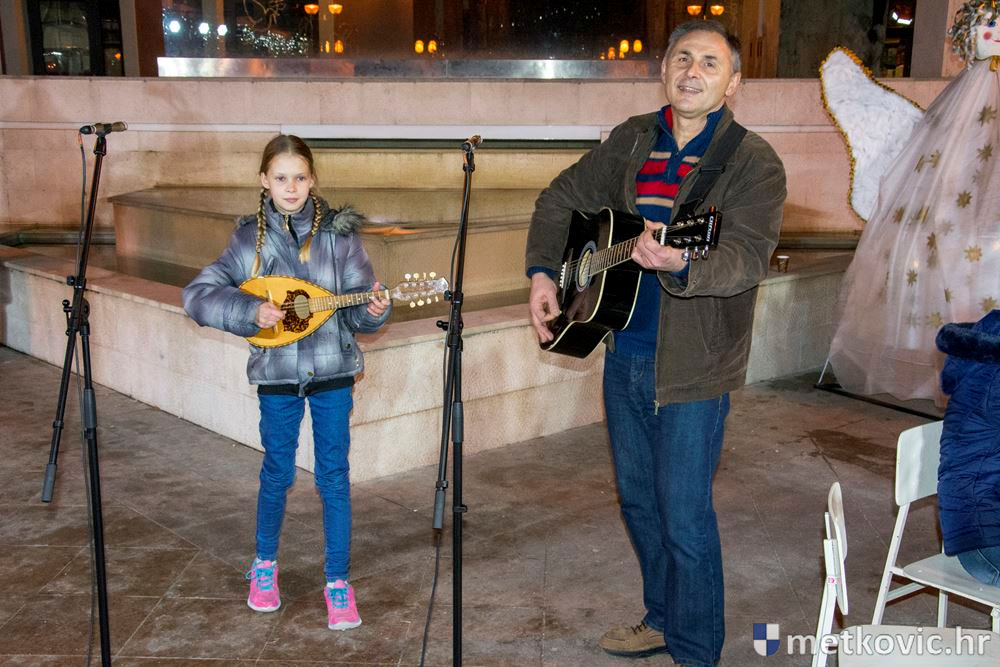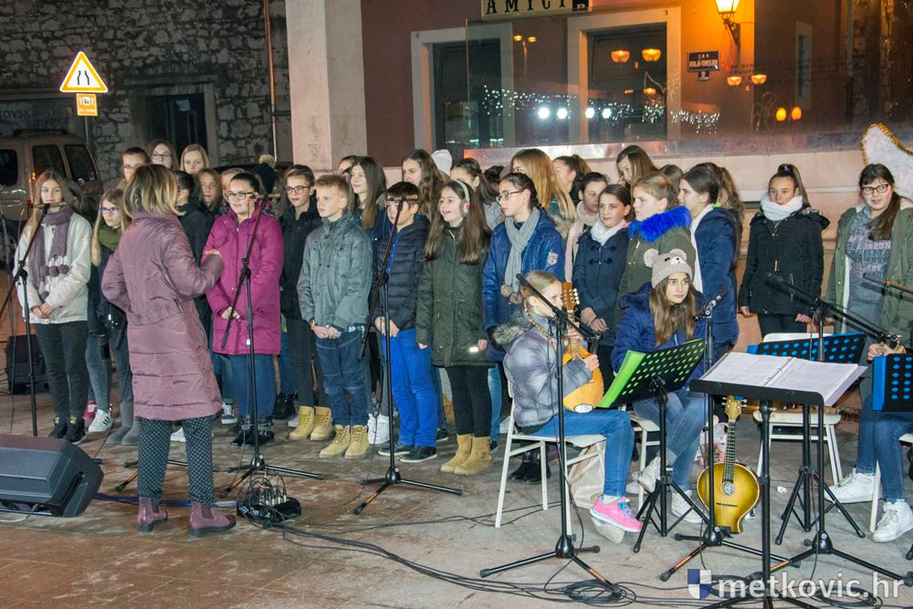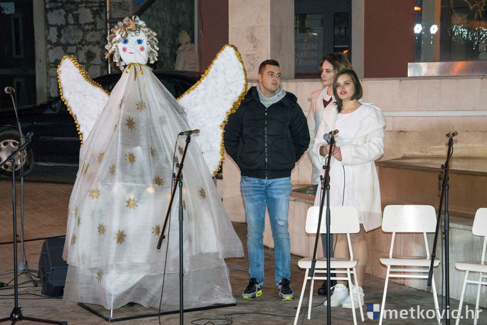 Frontmen i vokalist Glazbenog sastava Versi Nikica Ilić otpjevao je Tri kralja jahahu uz pratnju Mandolinskoga orkestra KUD-a Metković. U nastavku su Nikola Družijanić i Tonća Šiljeg otpjevali Radujte se narodi i Svjetla u noći, a potom je Ivana Sršen recitirala Tajna noći. Zbor i bend mladih Župe sv. Ilije otpjevali su Veseli se Majko Božja, da bi potom uslijedili zborovi osnovnih škola don Mihovila Pavlinovića i Kule Norinske koji su zajedno otpjevali Last Christmas. Zbor OŠ Kula Norinska pod ravnanjem voditeljice Zrinke Boras izveo je još Have yourself a Merry little Christmas. Na kraju su nastupile veteranke KUD-a Metković koje su otpjevale Dobra večer ovem stanu i Dječja skupina KUD-a Metković koja je otpjevala Kolendu iz Zatona. Program su oblikovali Milan Kapović i Danijela Baćilo.