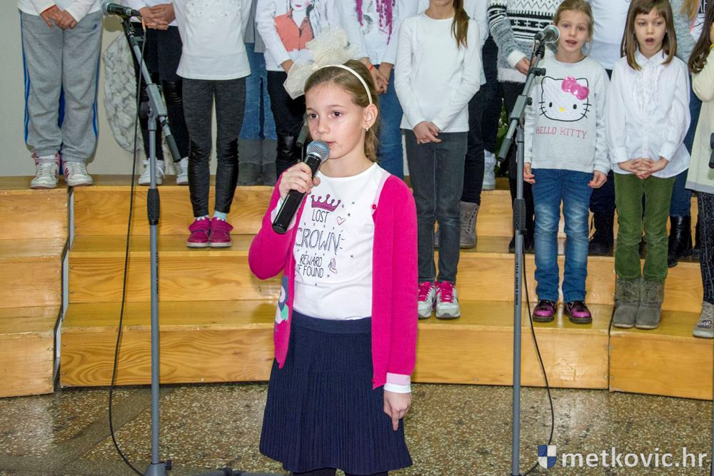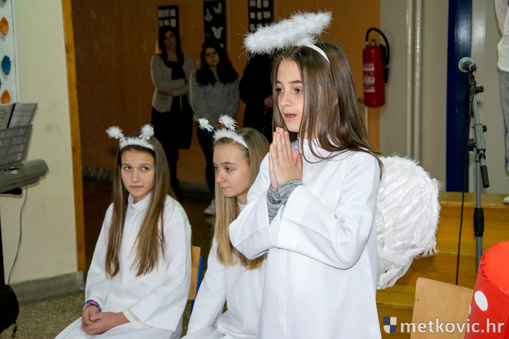 Pod vodstvom Zorana Martinovića nastupili su učenici četvrtih i šestih razreda koji pohađaju nastavu njemačkoga jezika, a nakon toga je nastupio Mali zbor s č. s. Vedranom Krstičević. Priredbu su obogatili recitatorsko-literarna skupina voditeljice Žane Marević i dramska skupina voditeljice Marija Gluščević, koja je izvela igrokaz. Pod vodstvom Aleksandre Lukić-Skelić nastupila je Mala klapa i dramsko-scenska skupina, dok su se na engleskome jeziku predstavili učenici koji pohađaju izvannastavnu skupinu Kultura i civilizacija engleskoga govornog područja voditeljice Julije Bakalar. Za kraj je Klapa učiteljica Žveljarin otpjevala pjesmu Polnoćka.