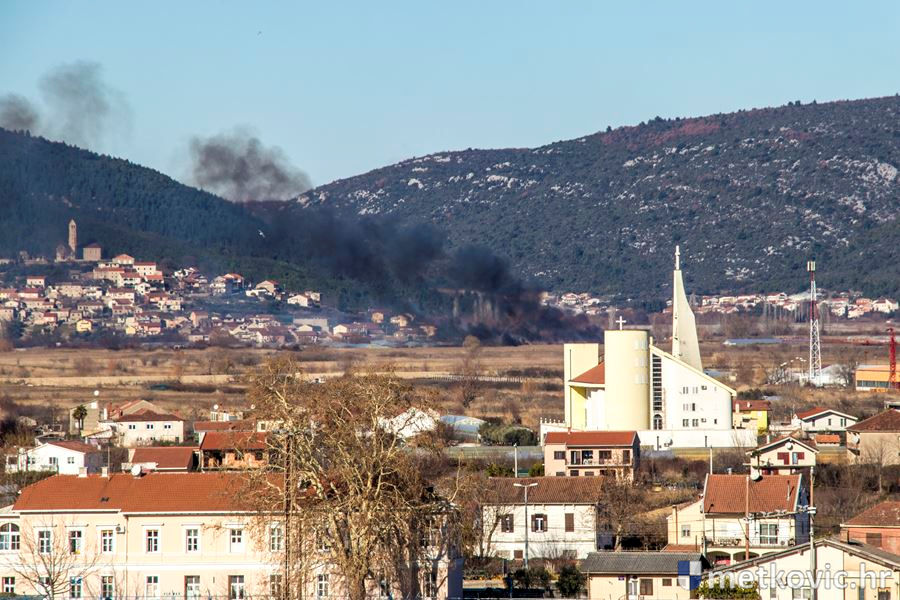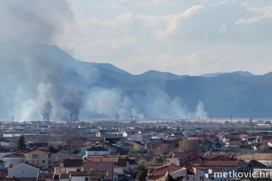 Metković, 29.12.2016. - Jaka bura i dalje pospješuje širenje požara po trščacima u okolici grada. Gori na više mjesta pa vatrogasci interveniraju po potrebi.