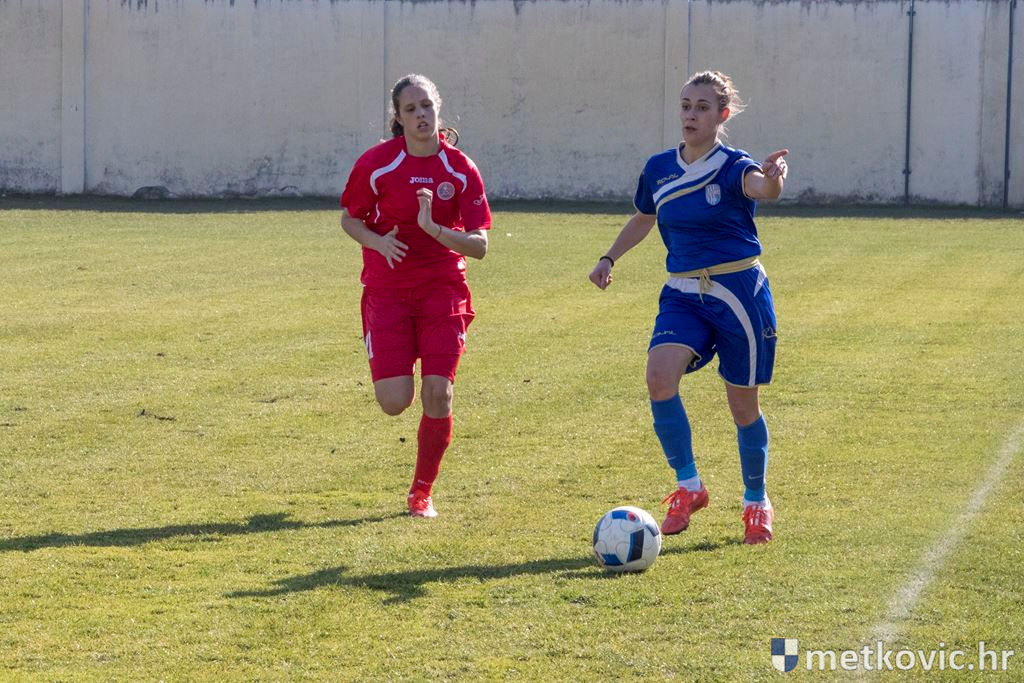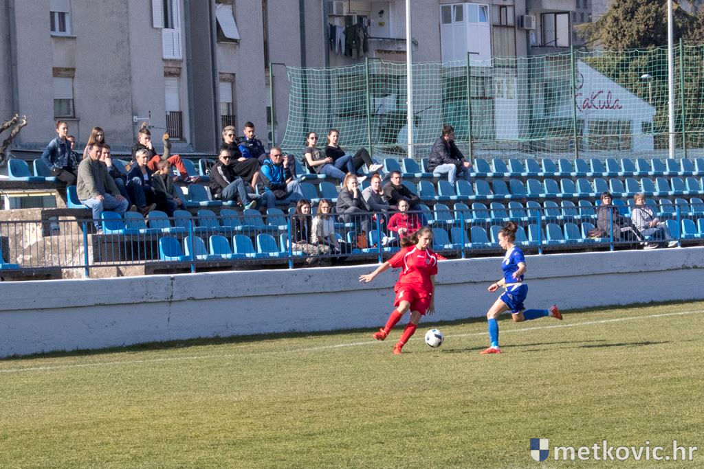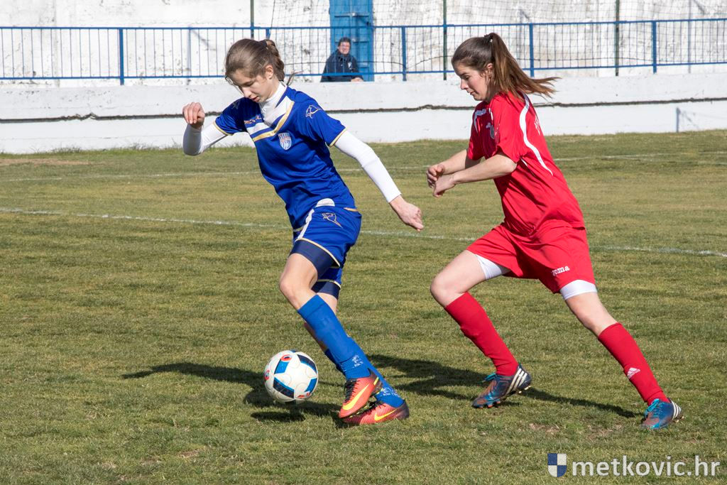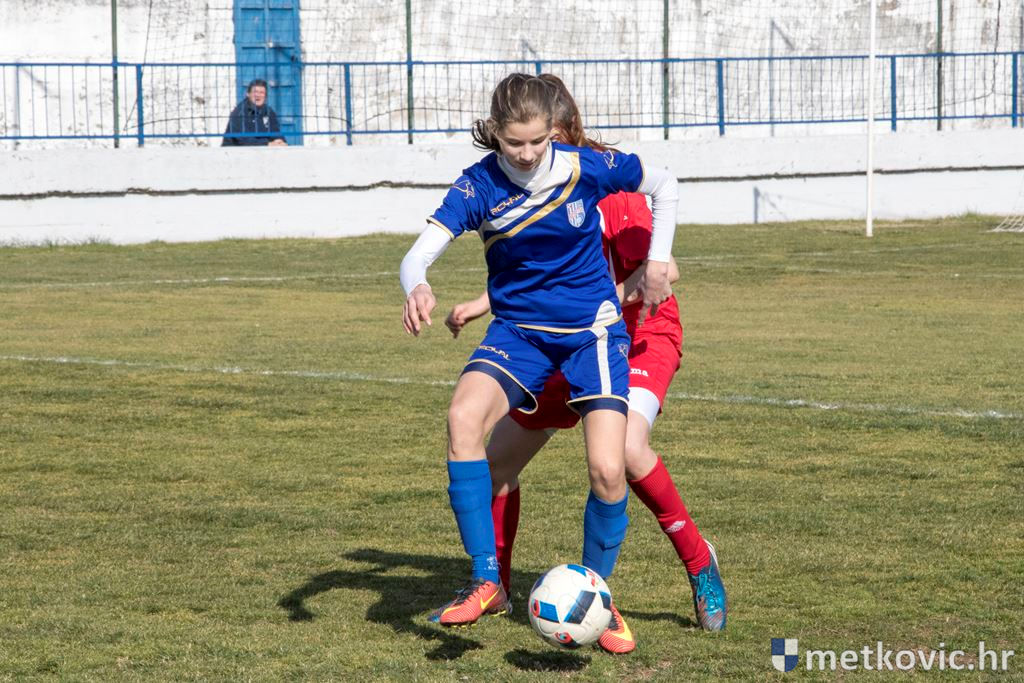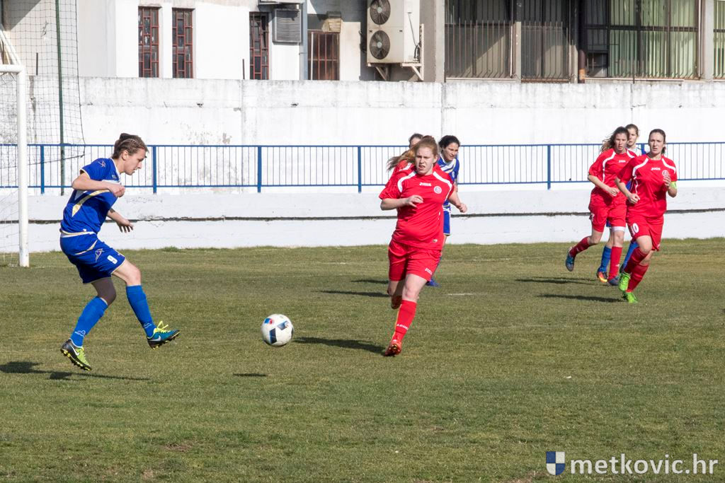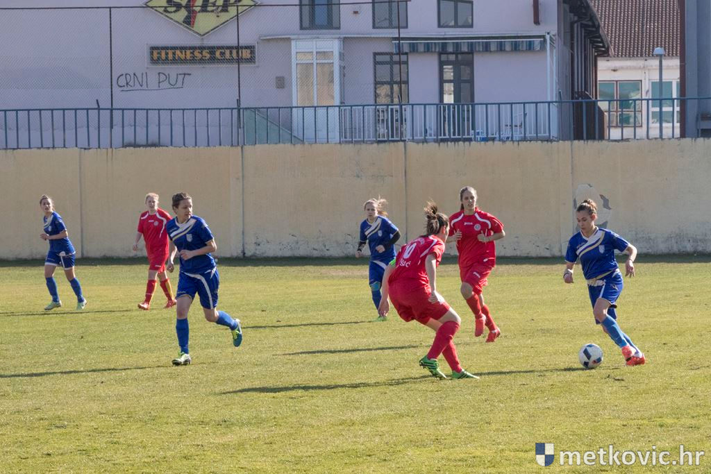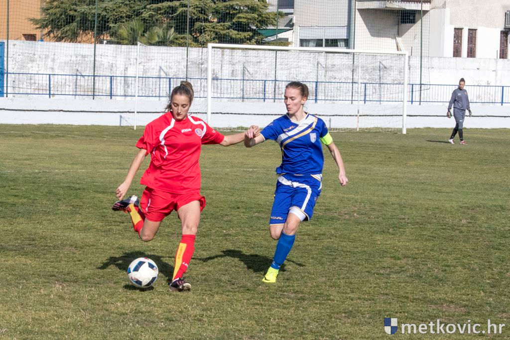 Iako bez nekoliko standardnih igračica, metkovske nogometašice odigrale su odličnu utakmicu i pogodcima Veronike Terzić i novakinje u sastavu Ana-Marije Kalamize 2:1 pobijedili renomiranoga suparnika. Vrijeme za igru bilo je idealno, a trener Duško Mijoč dao je priliku svim curama. Prvu postavu činile su Kešina, Jurković, Čajić, Suton, Žilić, Repeša, Šimunović, Terzić, Ćubić, Perić i, Herceg, a s klupe su u igru ušle još Sušak, Govorko, Mandić, A. Jurković, Marić, Kalamiza i Bokšić.
