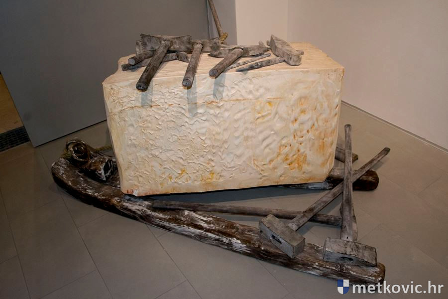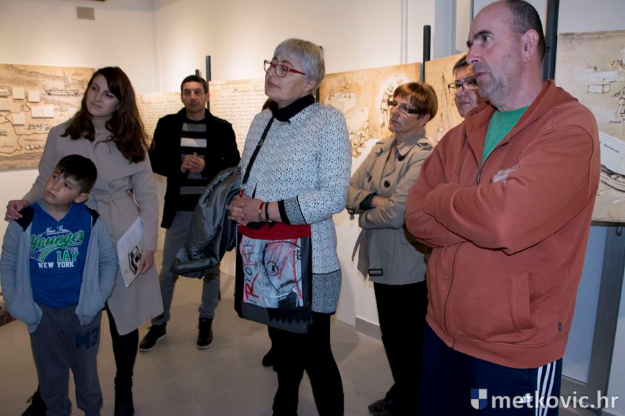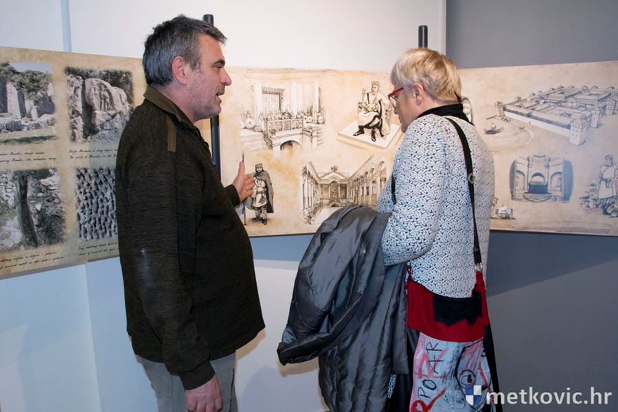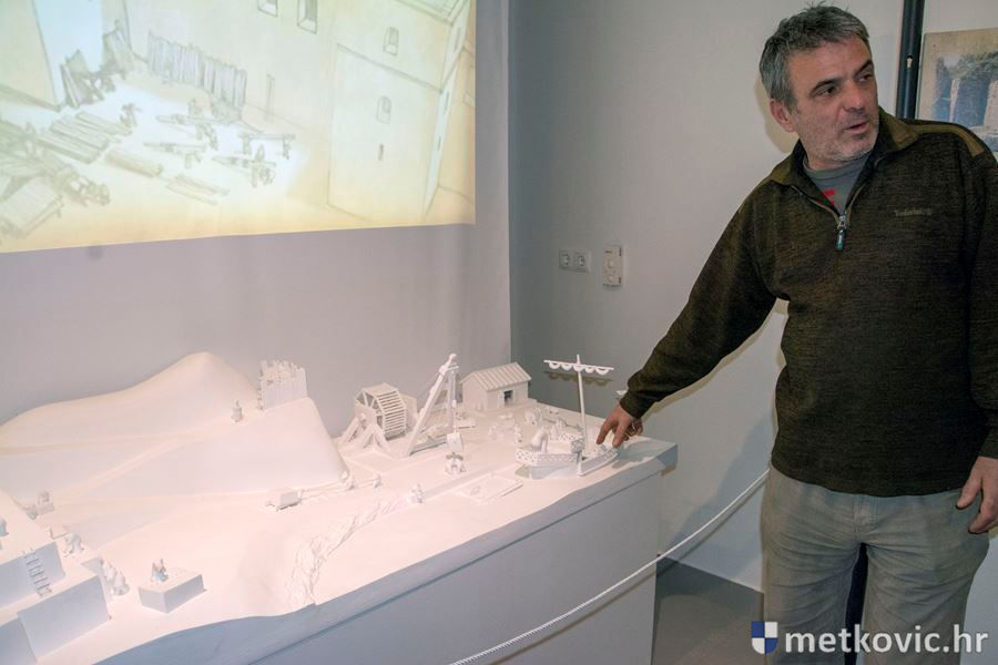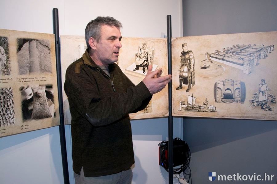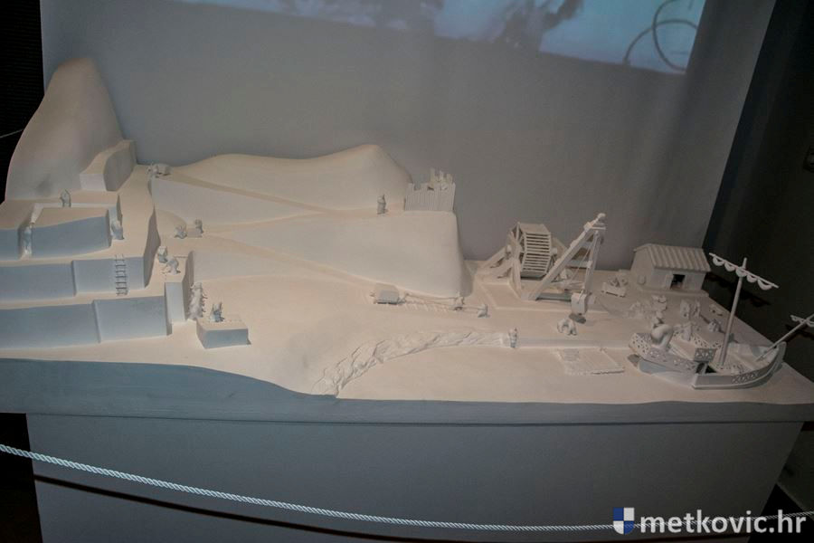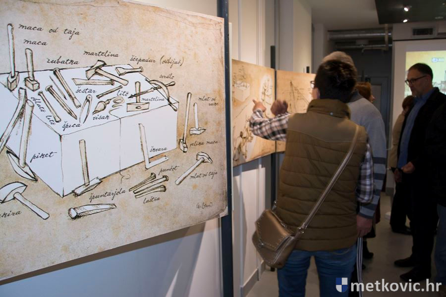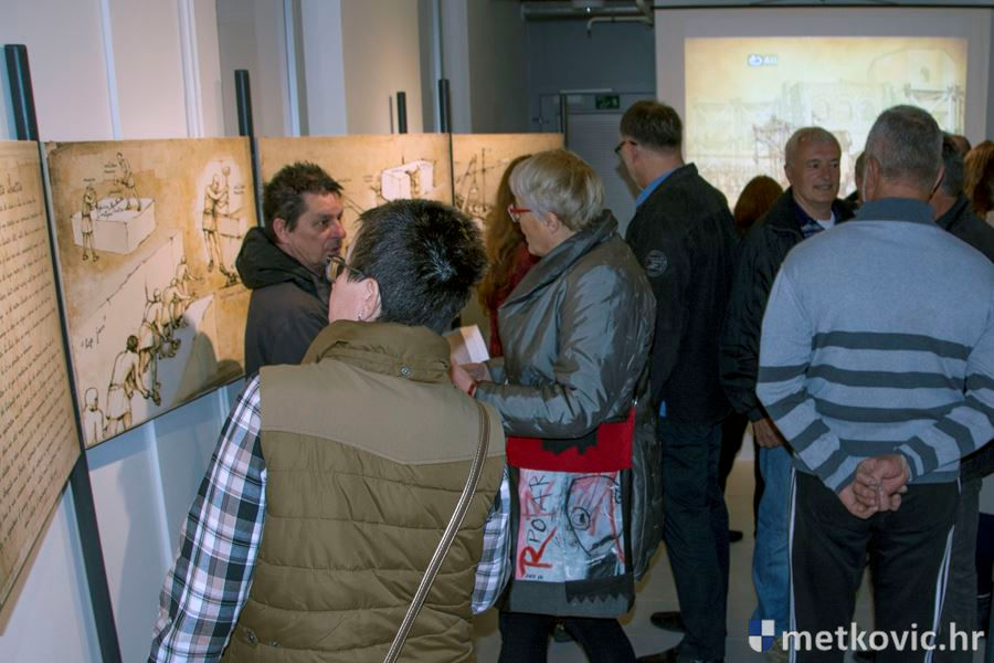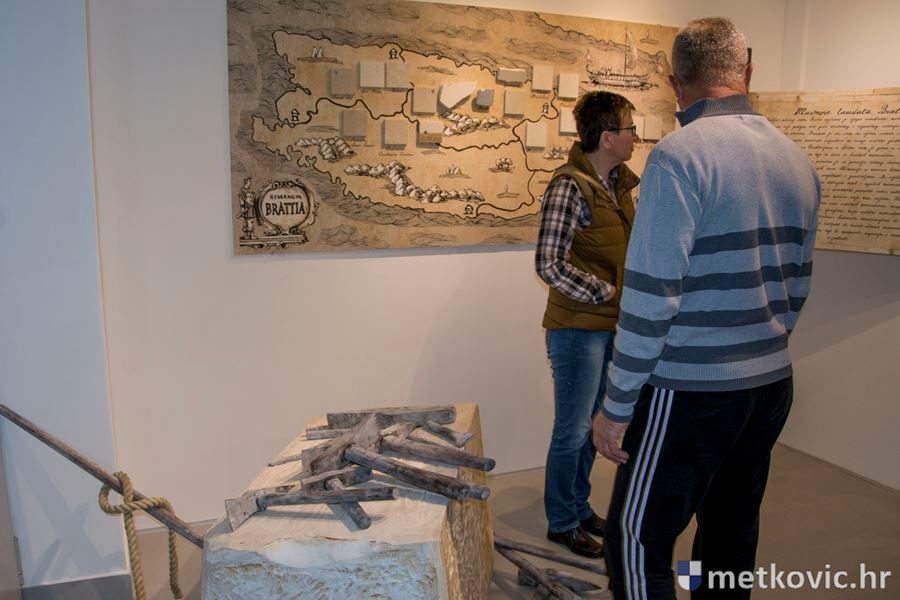 Zaželjevši okupljenima dobrodošlicu, izložbu su otvorili ravnatelj Muzeja Toni Glučina, metkovska gradonačelnica Katarina Ujdur i sam autor. Uz izložbu, koja je zamišljena kao edukativna pa donosi prikaz bračkih kamenoloma, alata, tehnika vađenja i obrade kamena, prikazana su i dva kratka filma. Prvi je animirani film Od kamenoloma do palače, koji prikazuje sve faze vađenja kamena u jednom od bračkih kamenoloma, transport do broda, lučku infrastrukturu, izgled broda, plovidbu i iskrcavanje te ugradnju kamena. Drugi je dokumentarac Hop Jan iz 1967., djelo našega Neretvanina Vlatka Filipovića, kojim je prikazana sva muka vađenja kamenih blokova iz pučiškoga kamenoloma na otoku Braču. Izložba je popraćena i crtežima na kojima je dočaran rad u kamenolomu te gipsanom maketom koja prikazuje organizaciju posla oko transporta kamenih bokova u antičkoj luci.
