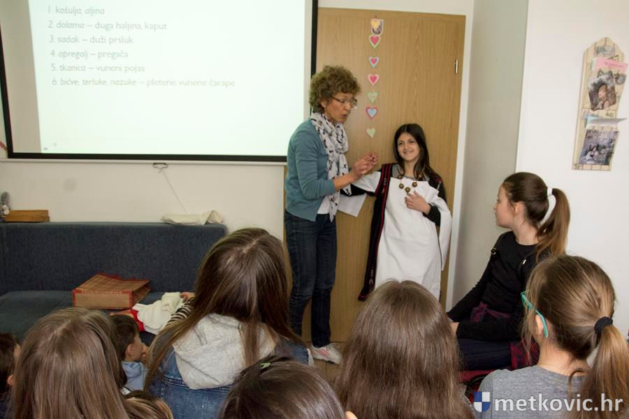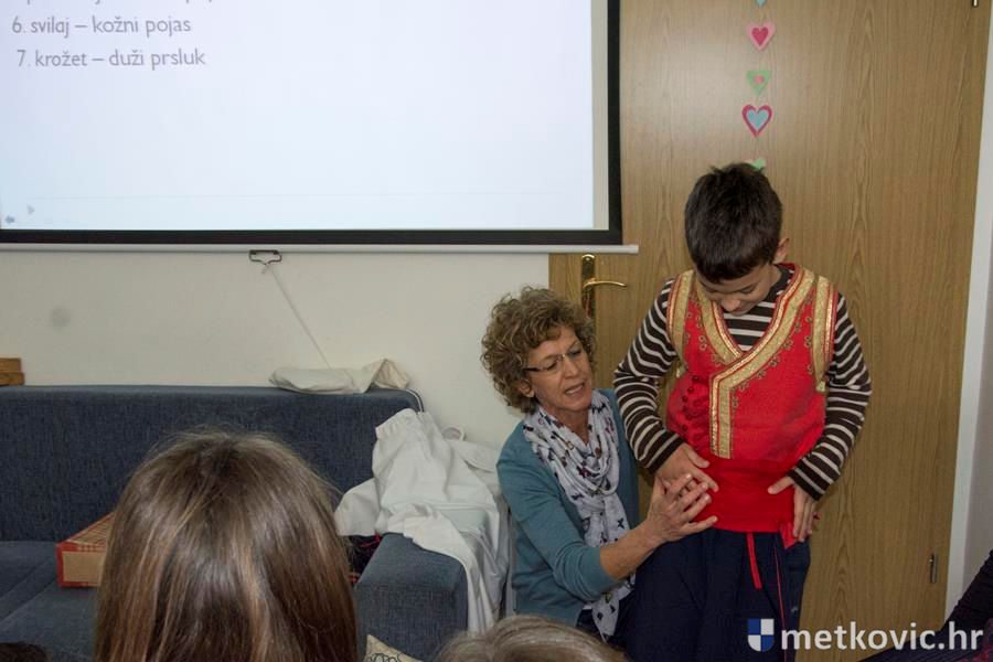 Učenici su s velikim zanimanjem slagali narodne nošnje, nakon čega je slijedilo međusobno pletenje pletenica, koje su djevojčice s oduševljenjem pravile.