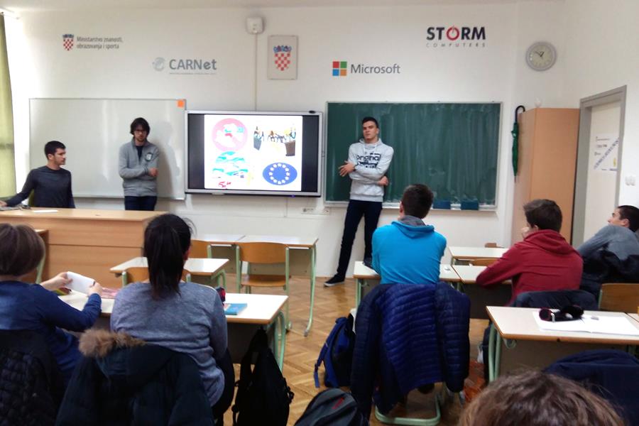 27.4.2017. - Pilot projekt Ureda za informiranje Europskoga parlamenta RH provodi se u 15 hrvatskih škola od 2016., a uključuje i Gimnaziju Metković. Skupina zainteresiranih učenika zanimljivim PowerPoint prezentacijama aktivno širi spoznaje o Europskoj uniji na način da gimnazijalce informira i potiče na učenje preko nastave razredne zajednice.