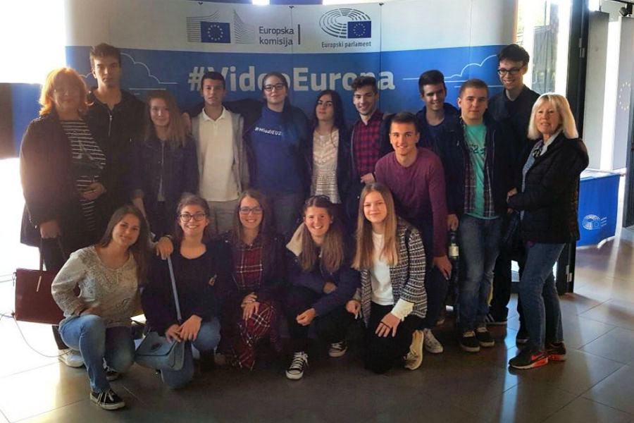9.5.2017. - U sklopu dosadašnjih edukativnih aktivnosti skupine učenika Gimnazije Metković u programu Škola ambasador Europskog parlamenta, kojim se razvijaju kompetencije u području Europske unije i razumijevanja njezine uloge u svakodnevnom životu, Ured za informiranje Europskoga parlamenta u RH organizirao je u Zagrebu 5. i 6. svibnja susret 13 prepoznatljivih srednjih škola iz različitih dijelova Hrvatske. Gimnaziju Metković predstavljalo je 15 učenika sa svojim mentoricama profesoricama Živkom Franković i Gordanom Nikolić.