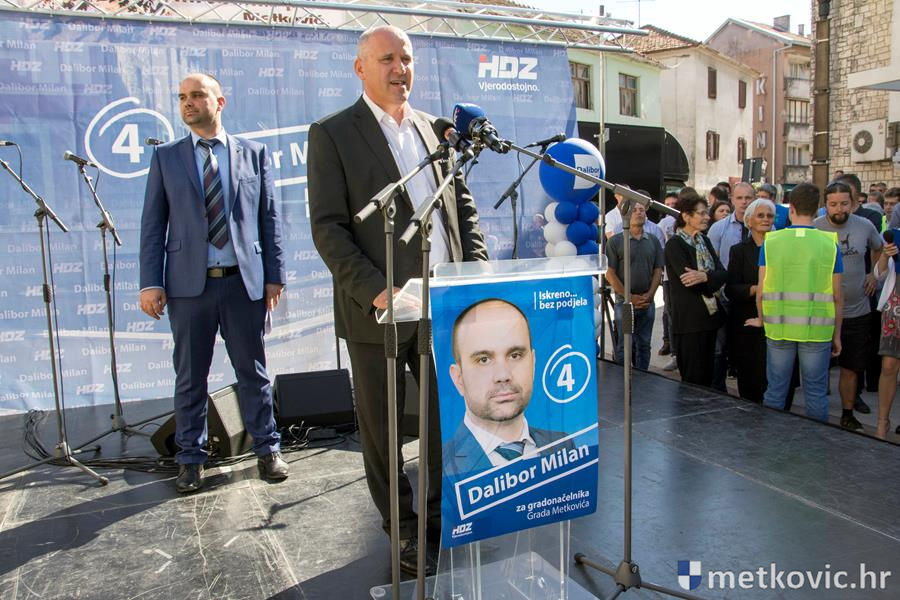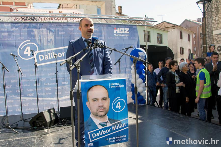 Milan je na početku svoga govora rekao da se u bitku uključio kako bi HDZ nakon 20 godina dobio svoga gradonačelnika Metkovića. Za aktualnu vlast je rekao da ima dugu listu neispunjenih obećanja, da su podijelili grad i iskoristili Metković za svoj osobni probitak i odskočnu dasku prema Zagrebu. Rekao je da se ne smijemo dijeliti i da će on biti gradonačelnik svih građana.
