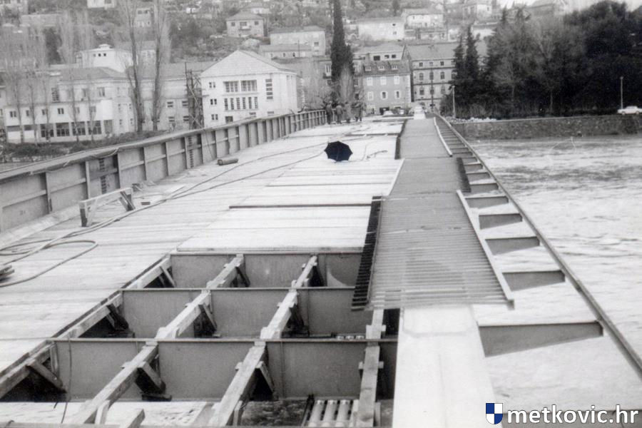 Most je otvoren 6. prosinca 1895. kao Jelisavin most (nazvan prema carici Elizabeti, ženi cara Franje Josipa I.) i tvrdoglavo nam je služio (unatoč mitskim poplavama i promjenama imena) sve do 1972., kada je počela njegova rekonstrukcija. Uzvodno od njega položen je pontonski most, koji je u nekoliko navrata nabujala Neretva odnijela. No, nitko se nije bunio, građani nisu bili uznemireni – jer nisu smjeli to biti, ili su razumjeli, ili nije bilo medija koji bi napuhivali tu temu. Bit će prije ono drugo.