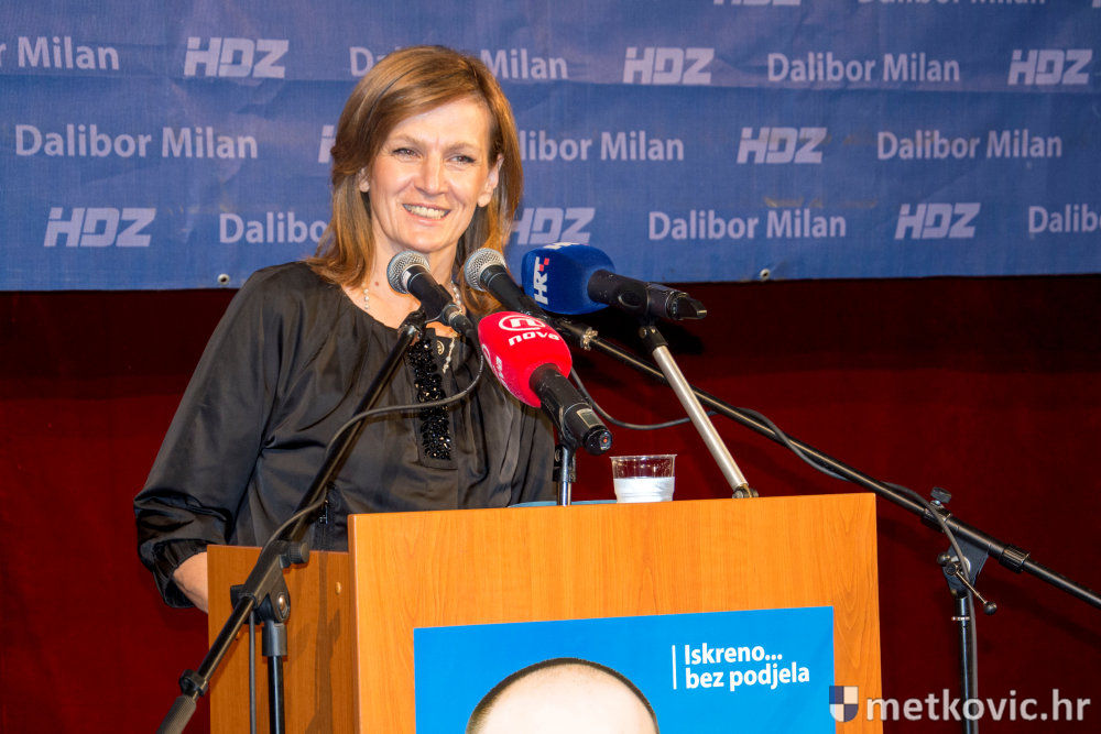 Uime HSLS-a, HDZ-ova koalicijskoga partnera na predstojećim izborima, obratila se Miljenka Manenica, istaknuvši da u svojemu programu u fokusu imaju gospodarstvo. Manenica je nadalje navela da tim Dalibora Milana čine ljudi široka spektra obrazovanja. Političkim oponentima je poručila da parole i floskule ostave za nogometne utakmice te je okupljene pozvala da daju glas Daliboru Milanu, koji je za nju izvrstan vođa, čovjek, a između ostaloga i gazda.