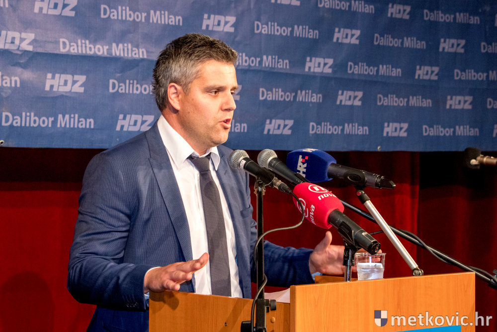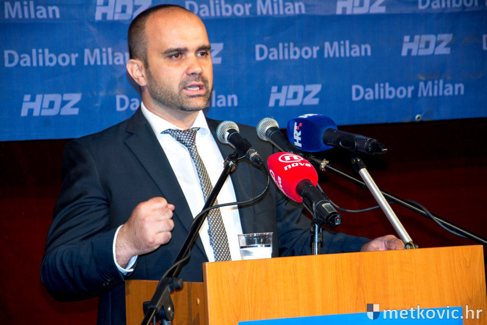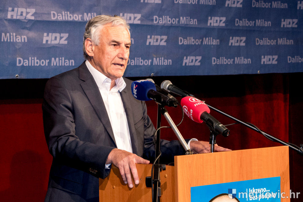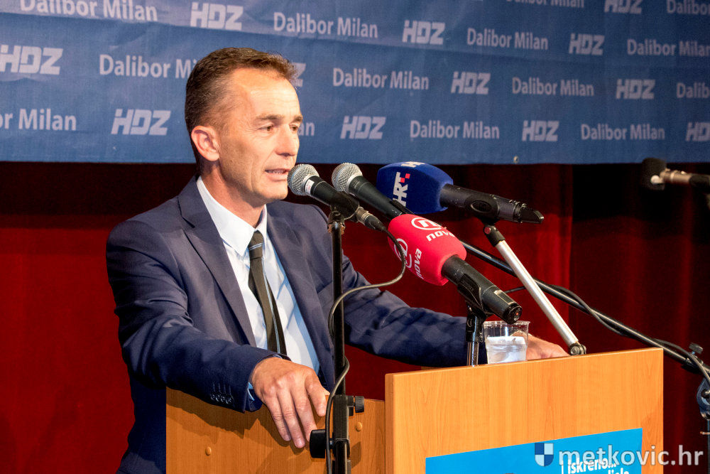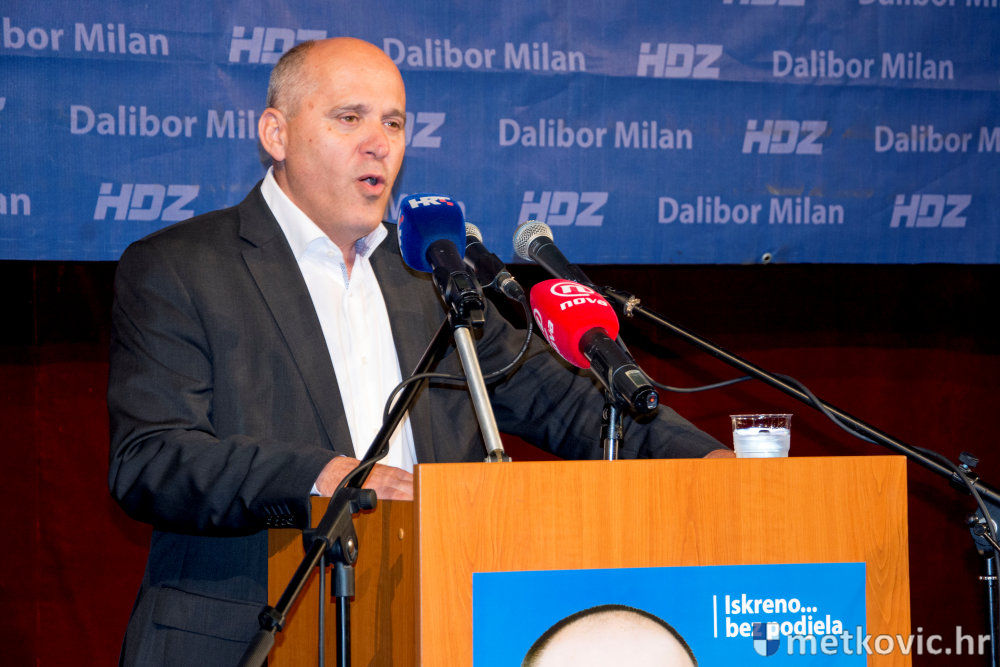 Pretposljednji govornici bili su kandidati za zamjenika Damir Raić i Robert Doko, koji su Milanu uputili snažnu podršku, nakon čega je on, uz ovacije nazočnih, izašao za govornicu. Uz uvodni pozdrav skupu, Milan je svima zahvalio što su došli u velikome broju i tako pokazali snagu HDZ-a. Istaknuo je da osjeća izniman ponos što je kandidat stranke koja je u najtežim trenutcima očuvala samostalnost države. Kazao je i to da mu je obitelj najveća vrijednost te da mu je cilj grad bez podjela. Kada je prije četiri godine Most pobijedio, kako navodi Milan, svi su očekivali promjenu, ali se ona nije dogodila. Tijekom svoga obraćanja Milan je predstavio ključne mjere HDZ-ova gospodarskoga programa, koje će se provesti ako on pobjedi na izborima. Najavio je ukidanje naplate parkinga, pravedniju podjelu komunalnih zona, niže cijene vrtića, navodnjavanje Koševa i Vrbovaca, reviziju Natječaja za dodjelu poljoprivrednih površina u državnom vlasništvu, besplatne udžbenike za učenike prvoga razred osnovne škole… Za kraj je na pozornicu pozvao svoje zamjenike i sve kandidate sa svoje liste za Gradsko vijeće te ih predstavio skupu.