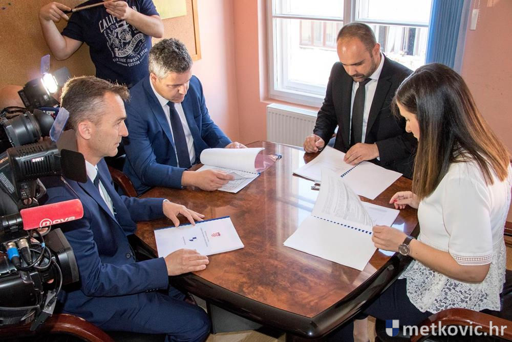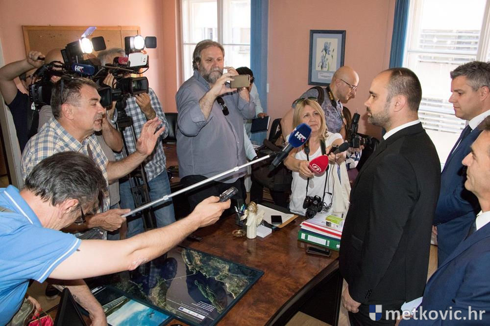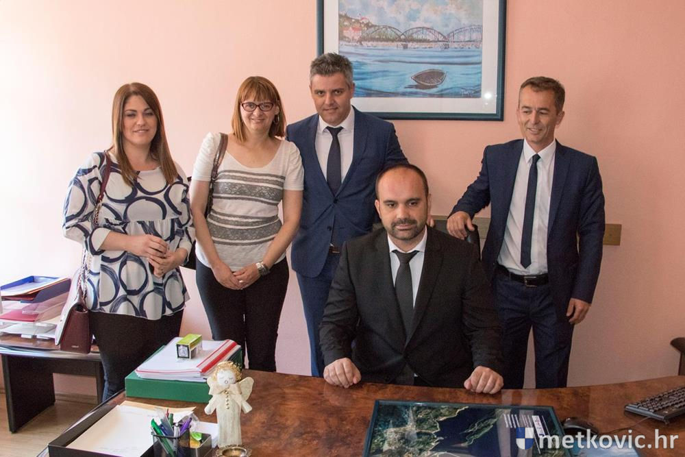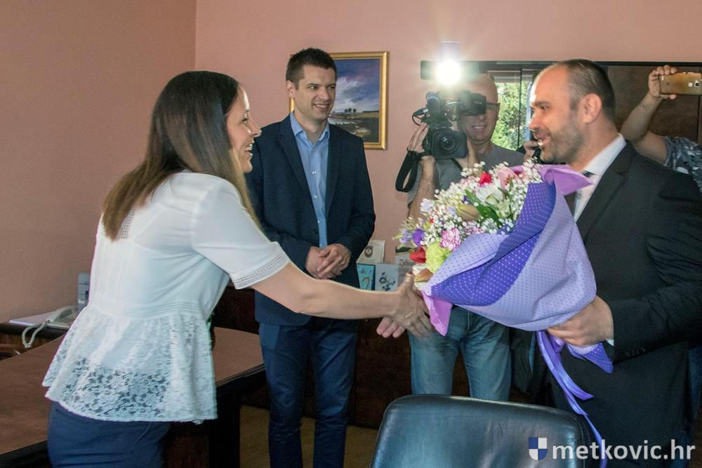 9.6.2017. - Novi metkovski gradonačelnik Dalibor Milan danas je sa svojim zamjenicima Robertom Dokom i Damirom Raićem i službeno preuzeo izvršnu vlast u Gradu Metkoviću. U uredu gradonačelnika dočekala ih je Katarina Ujdur te Milanu prvo predala ključeve Grada, a potom i potrebnu dokumentaciju o zatečenome stanju u Gradu.