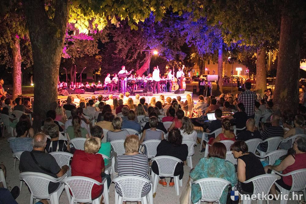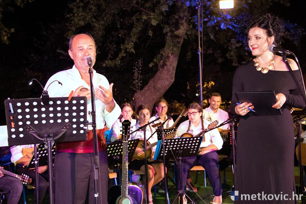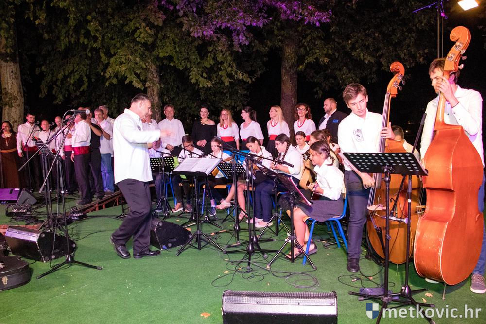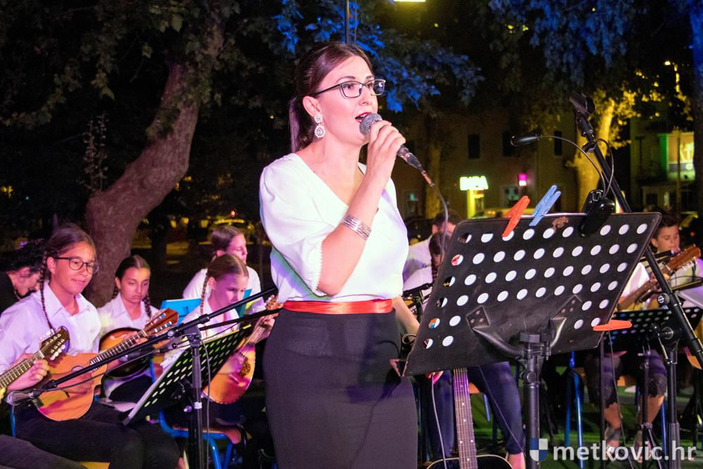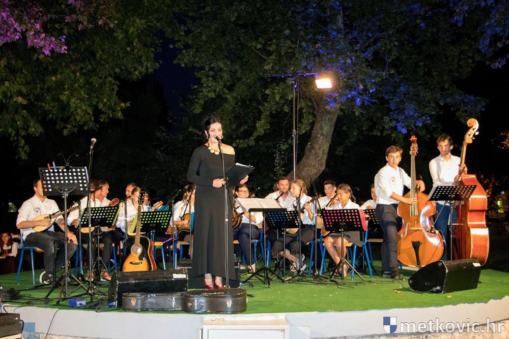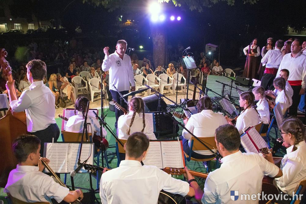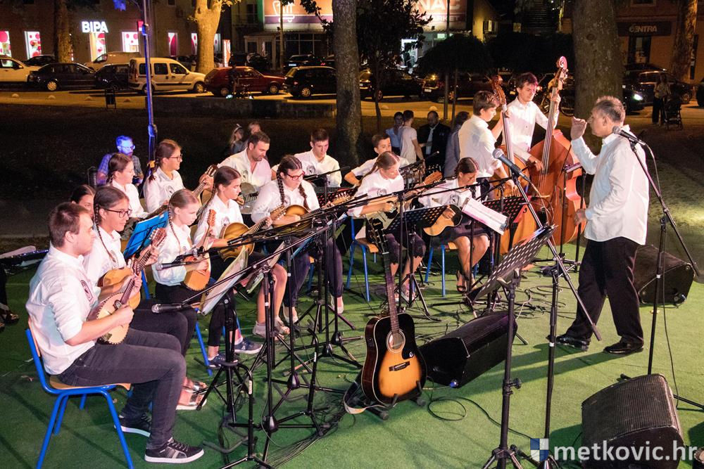 Pred početak programa brojnu je publiku, u kojoj su bili i gradonačelnik Dalibor Milan te zamjenica župana Žaklina Marević, pozdravio predsjednik Društva Mato Obrvan. Pod ravnanjem Tomislava Hercega orkestar je izveo poznate skladbe, a s njima su kao gosti nastupili vokalni solisti Branko Medak, Marija Maja Jerković, Marko Mustapić i Zoran Bebić te Klapa Kumpania iz Vele Luke, Klapa Viole iz Drvenika i Mješovita klapa Sveti Nikola iz Metković. Prema pljesku kojim je popratila izvođače, publika je uživala u repertoaru u kojemu se našlo ponešto za svakoga. Koncert je završen zajedničkom izvedbom poznate pjesme Croatio iz duše te ljubim, a maestro Herceg zahvalio je članovima svoga orkestra, svim gostujućim klapama i solistima te posebno roditeljima mladih glazbenika. Publiku je pozvao na veliki slavljenički koncert KUD-a Metković, koji će se u utorak, 18. srpnja u 20:30 održati na ljetnoj sceni GKS-a.