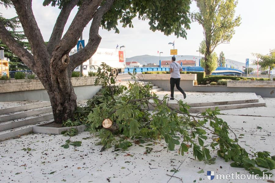 Jak vjetar na više je mjesta otkidao grane stabala, a pred Lučkom kapetanijom iz korijena je izvalio dvadesetmetarski cedar, koji je pao tik uz parkirani automobil. Na svu sreću šteta nije velika, kolika je mogla biti.