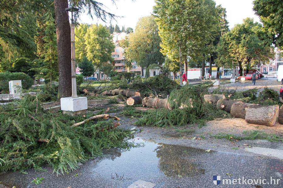 Inače, veliki su se cedrovi i do sada pri olujnim nevremenima pokazali opasnima jer imaju plitko korijenje pa ih vjetar lako izvali. Stoga bi trebalo ukloniti i preostali cedar te pri budućem uređenju Trga kralja Tomislava razmišljati da se on proširi sve do nogostupa pred parkom. Tako bismo dobili puno širi trg za razna događanja, a i kada se taj prostor koristi za parkiranje promet bi se puno lakše odvijao.
