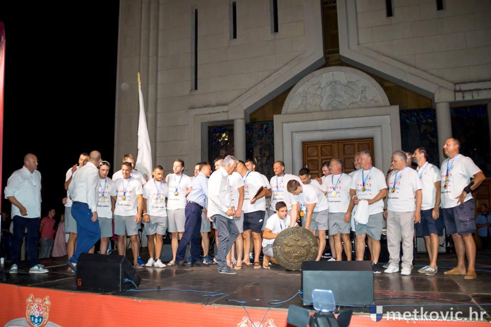 Sama je utrka prošla u redu, osim što su Krvavčani imali nezgodu s nalijevanjem vode u lađu pa su tako na pola utrke izgubili vodeće mjesto. Kominjani su zasluženo prvi pa su se sa šest pobjeda izjednačili s Rogotinjanima. Njima je zlatne medalje predao Mate Granić, izaslanik predsjednice Grabar Kitarović, a veliki Domagojev štit predao im je predsjednik Sabora Jandroković. Bjelovarskim Argonautima srebrne je medalje oko vrata objesio župan Dobroslavić, metkovski gradonačelnik Dalibor Milan predao im je mali srebrni Domagojev štit u trajno vlasništvo.