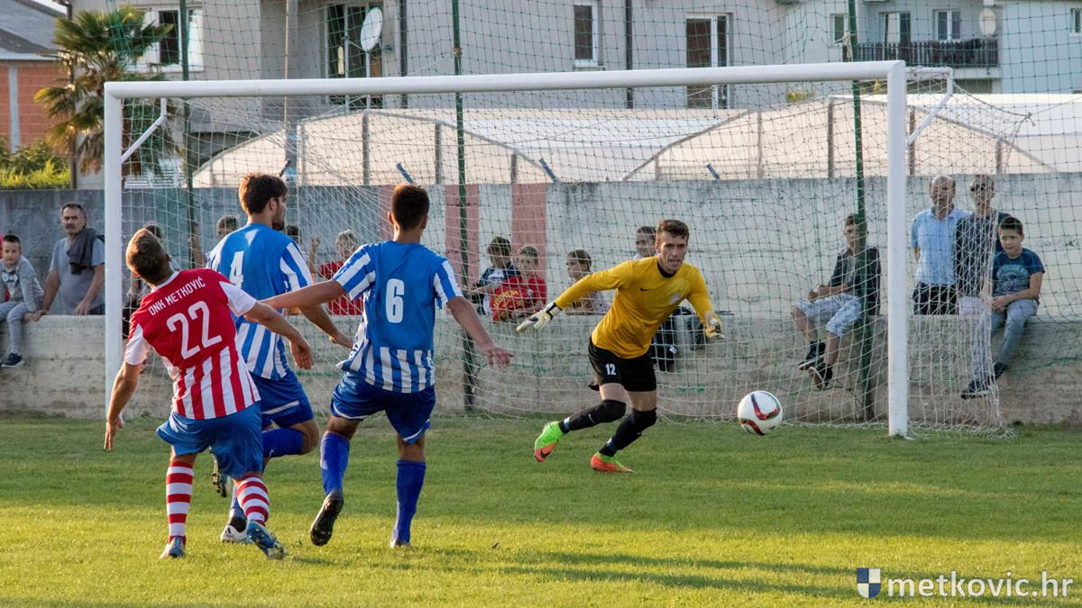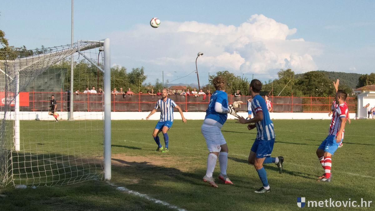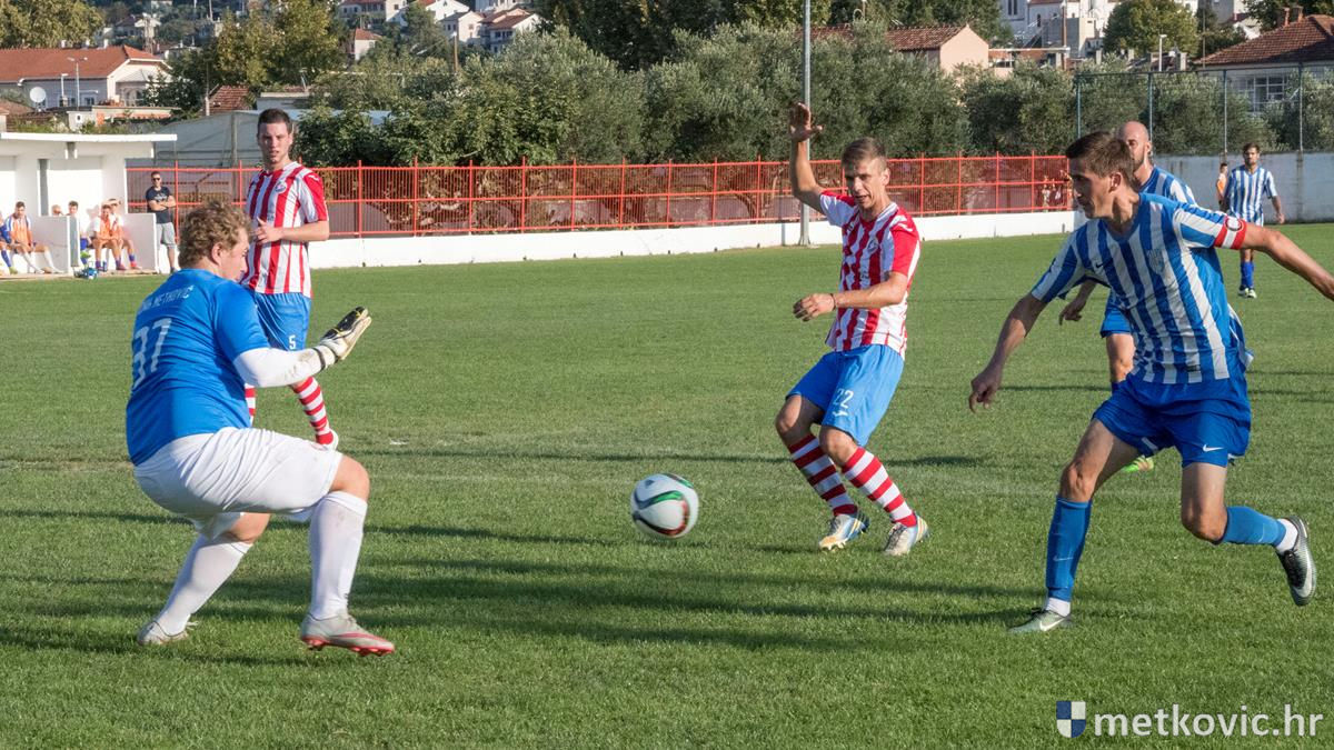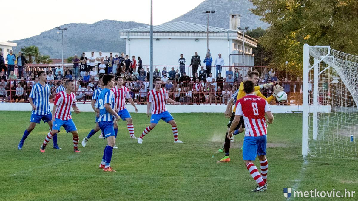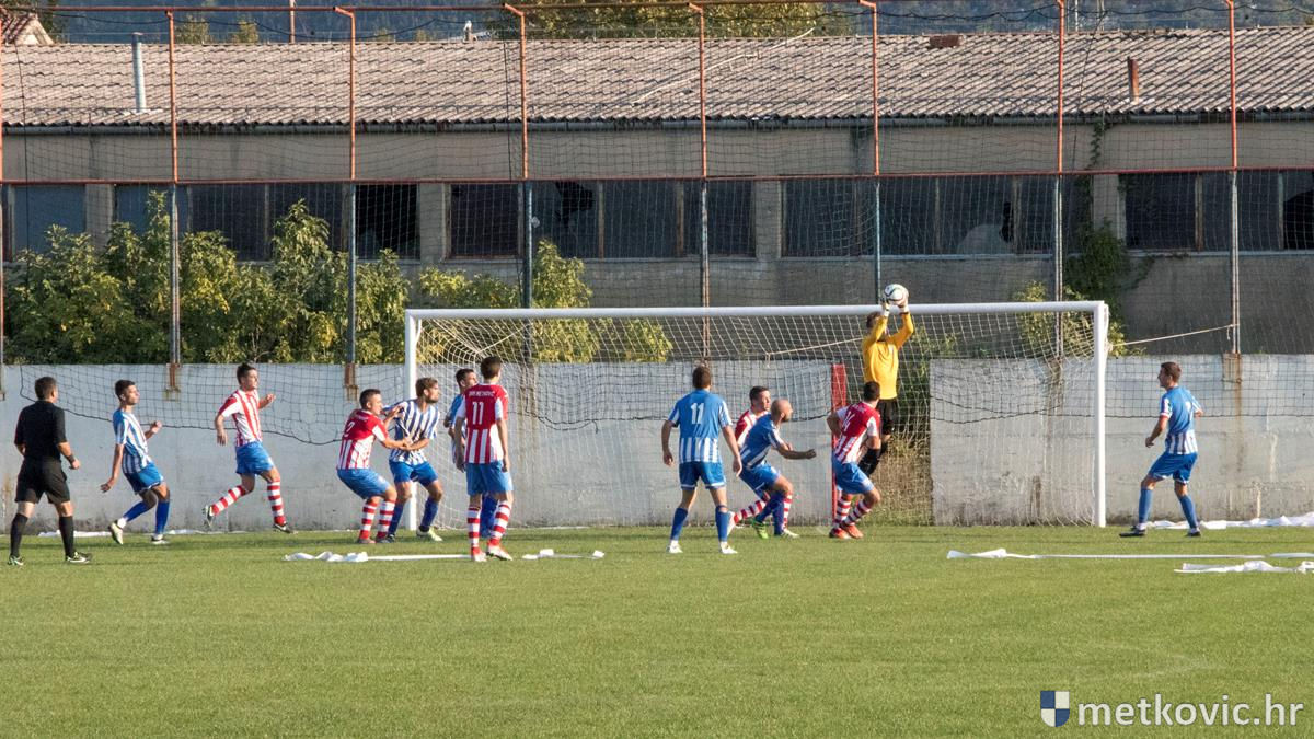Metković, 25.9.2017. - Pred preko 500 gledatelja jučer su se na igralištu ONK Metković prvi put u istome rangu natjecanja susreli domaći ONK Metković i NK Neretva, koja je prošle sezone ispala i III. HNL jug pa sada igra u I. ŽNL. Nakon dva kola Neretva je potvrdila da je favorit za prvo mjesto, tako i u trećemu, pobijedivši susjede s Preka s 3:0.