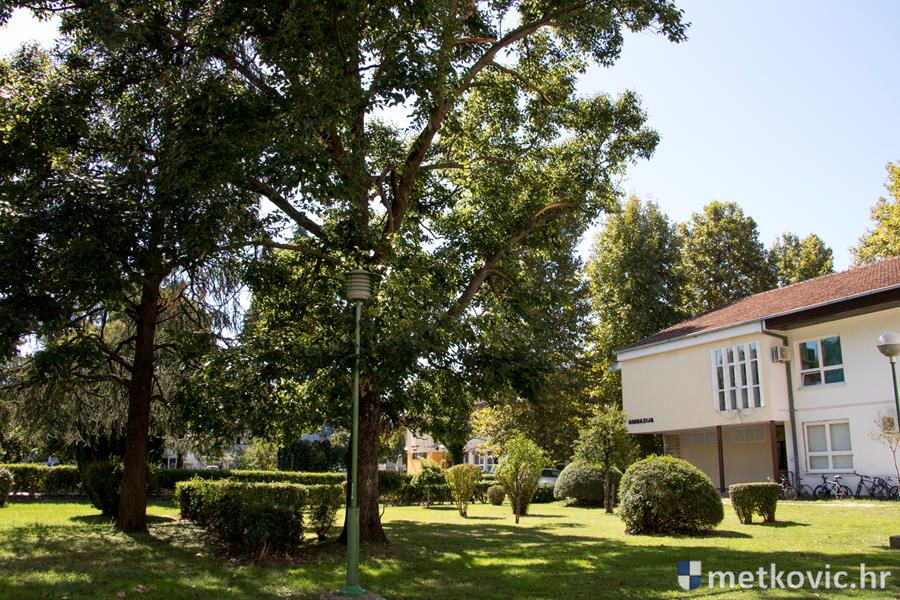26.9.2017. - Prošlo je točno 50 godina otkako se Gimnazija Metković iz sadašnje zgrade OŠ Metković preselila u novu zgradu. Gimnazijski vrt je koncem šezdesetih godina prošloga stoljeća sa svojim učenicima zasadio pok. prof. Josip Gulin Bepo. Zapravo je to mali arboretum u kojemu se mogu naći i egzotična stabla poput bombon-drveta.