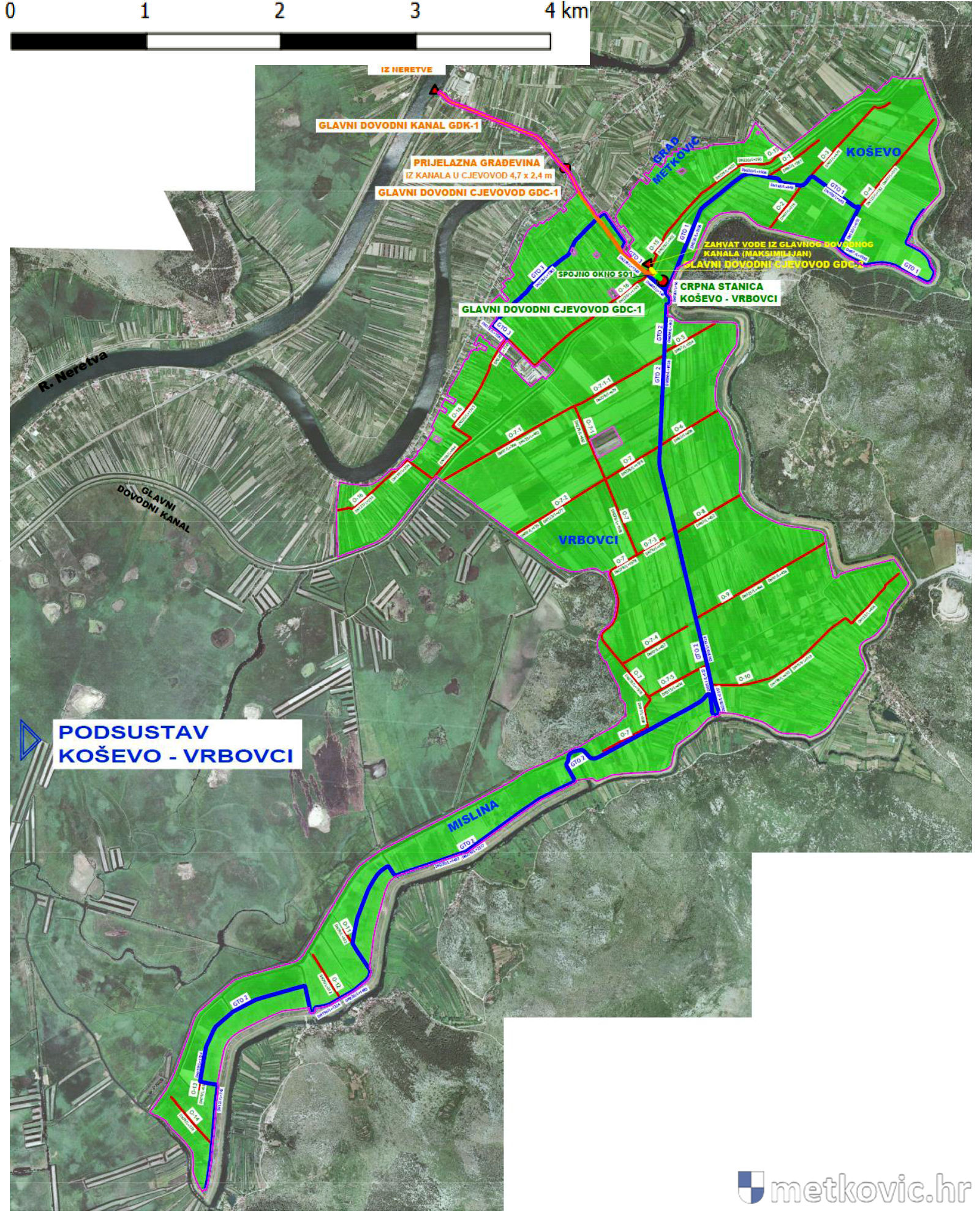 Zahvat, sustav navodnjavanja Donja Neretva - podsustav Koševo – Vrbovci, nalazi se unutar područja ekološke mreže HR1000031 Delta Neretve – područje očuvanja značajno za ptice i HR5000031 Delta Neretve – područje očuvanja značajno za vrste i stanišne tipove.