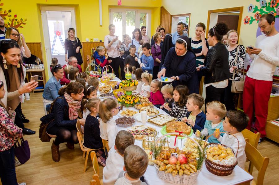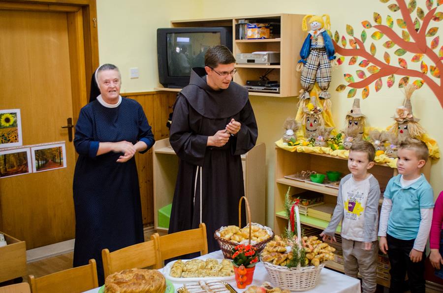 Metković, 21.10.2017. - Kao siješ, tako ćeš i žeti – poznata je narodna mudrost. Sjeme zahvale Bogu za kruh naš svagdašnji, peciva, slastice i plodove prirode siju časne sestre svojim mališanima u DV Mali Isus. Uz pomoć roditelja, njihove tete – časne sestre Lucija i Magdalis priredile su im atraktivnu izložbu, pokazavši im što sve vrijedne ruke mogu učiniti od onoga što nam Bog kroz prirodu daje, a Božji blagoslov nad svima zazvao je fra Duje Jukić.