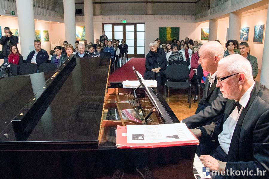 Goste je publici predstavio ravnatelj Ustanove za kulturu i sport Milan Kapović, rekavši da će ove sezone u Metkoviću iz ciklusa koncerata HGSM-a biti dva koncerta, a moguć je i treći. Prof. Jakša Zlatar je rekao da nema baš puno kompozicija pisanih za klavirska dua te da su oni odabrali Schubertovu Fantaziju u f-molu, Debussyjevu Petite Suite te Rahmanjinovljev Six pieces Op. 11, iz kojega su izveli četiri od šest stavaka.