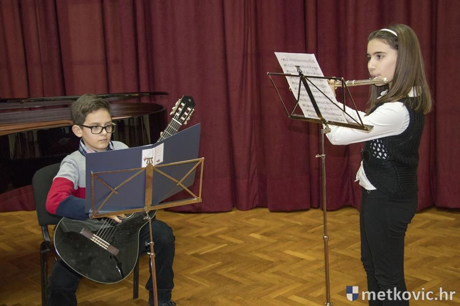 Na koncertu je nastupilo tridesetak učenika, koji su svirali na flauti, harmonici, saksofonu, klaviru, trubi, gitari, klarinetu i rogu. Mi smo fotografijama popratili one iz nižih razreda.