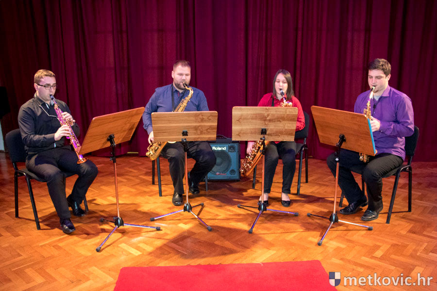 Svirao se Handel, Lantier, Dobussy, Detoni, Matitia, Escaich i Iturralde, te nakon velika pljeska publike mladi su glazbenici kao dodatak izveli Duet cvijeća iz Delibesove opere Lakme. Marko Gerbus (sopran saksofon), Deni Pjanić (alt saksofon), Nereo Arbula (tenor saksofon), i Erna Čizmić Rebić (bariton saksofon) Kvartet su osnovali 2015. godine, a koncertom u srpnju iste godine u ciklusu Čari klasične glazbe u Podrumima zabilježili su svoj prvi nastup. Od tada je kvartet ostvario brojne nastupe i sudjelovao na raznim manifestacijama, od čega se posebno ističe nastup na Izlogu suvremenog zvuka u Zagrebu, te nastupi na Danima nove glazbe u Splitu. Dobitnici su I. nagrade na Međunarodnom natjecanju Davorin Jenko u Beogradu 2016. godine, te I. nagrade na regionalnom i II. nagrade na državnom natjecanju komornih sastava 2017. godine. Repertoar kvarteta obuhvaća djela iz svih stilskih razdoblja – od baroka do suvremene glazbe.