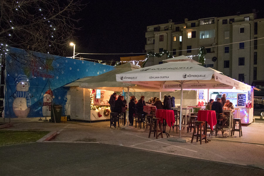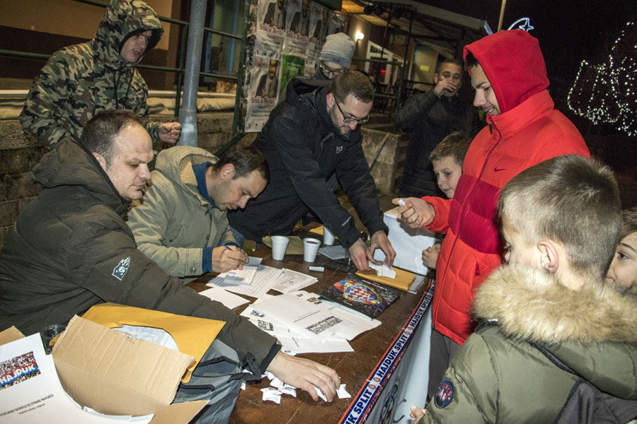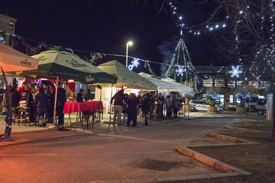 Metković, 20.12.2017. - Unatoč temperaturi koja se bliži ništici, na Trgu dr. Franje Tuđmana večeras je bilo prilično živo. Goste su zabavljali metkovski bendovi Soulflake i Eho, a metkovsko Društvo prijatelja Hajduka iskoristilo je prigodu za upis članova. Kažu da su brojniji za pedesetak novih.
