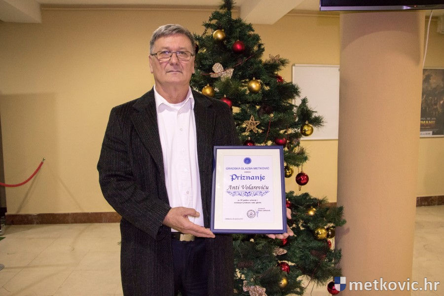 Uvodno se gledateljima obratio predsjednik Uprave Pavo Jerković te im zaželio sretan Božić i Novu godinu. Dugogodišnjem članu Anti Volareviću uručio je Priznanje za 50 godina sviranja i sveukupan pridonos radu Glazbe.