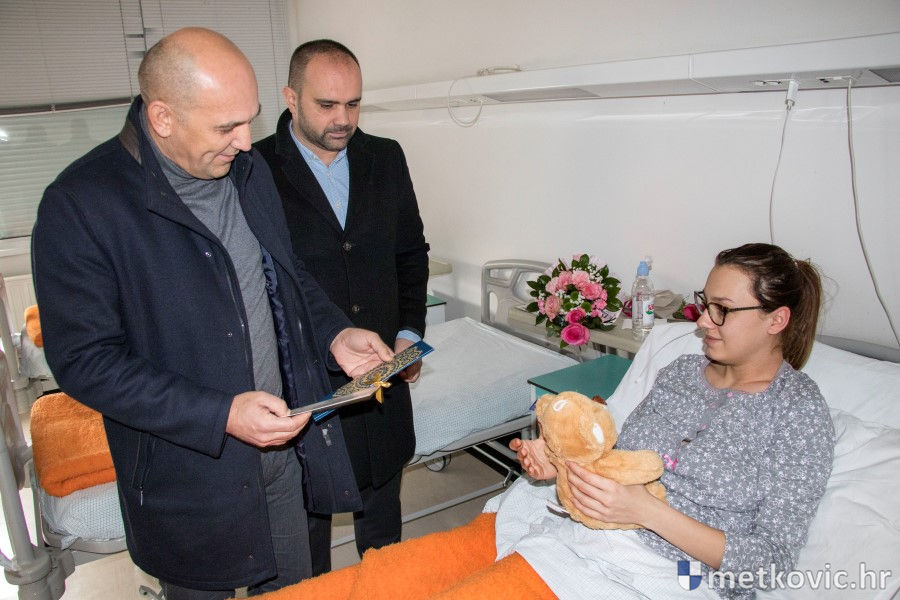 2.1.2018. - U pratnji ravnatelja Doma zdravlja Metković Mihovila Štimca i ginekologa dr. Živka Matuška, danas je metkovski gradonačelnik Dalibor Milan u našemu rodilištu posjetio prvu rodilju u 2018. godini.