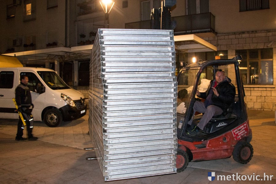 Metković, 30.1.2018. - Ovogodišnje Pokladne svečanosti dobrim će se dijelom održavati pod šatorom na južnoj strani Trga kralja Tomislava. Večeras se na nj iskrcavaju dijelovi šatora površine 300 m četvornih, čije će svečano otvaranje biti u subotu, 3. veljače, uoči Malih poklada.