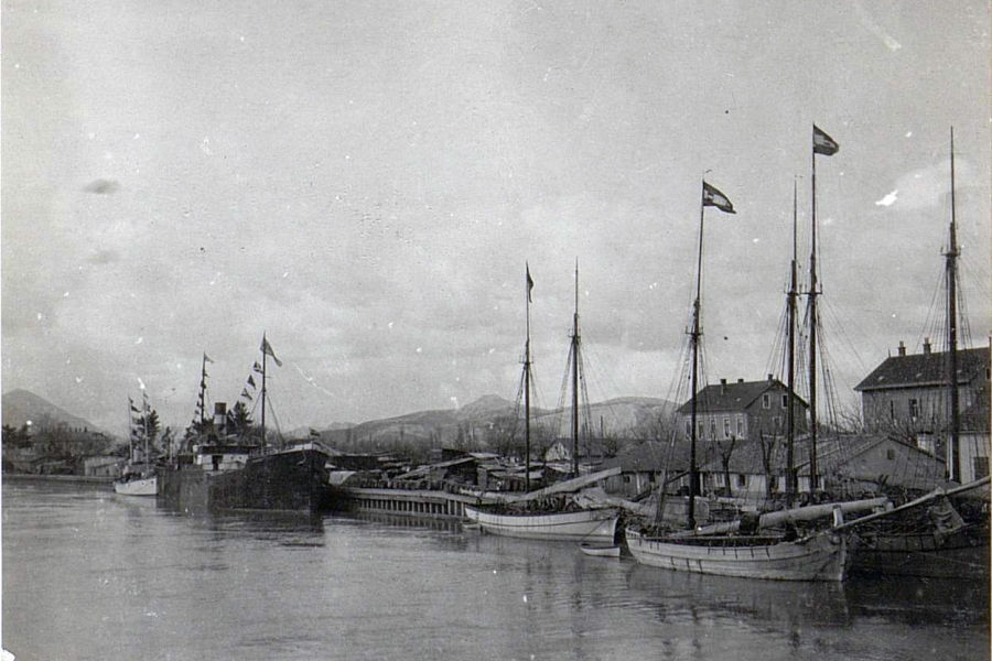 1.2.2018. - Pronašli smo dvije metkovske ratne fotografije, snimljene u ožujku 1916. Na prvima je lijeva strana grada (dio uvećan), a na trećoj su brodovi u luci s izvješenim svečanim zastavama. U opisu stoji: „Proslava pobjede u Metkoviću u ožujku 1916.“