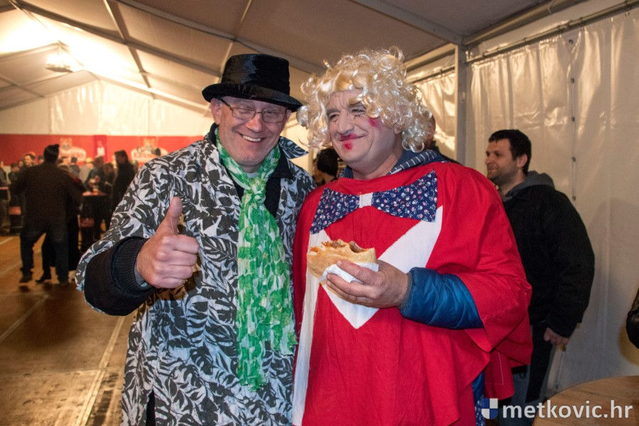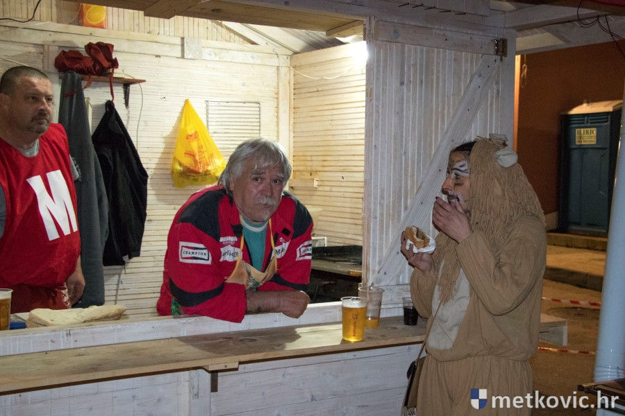 5.2.2018. - Pod pokladnim je šatorom sinoć održana prva u nizu zabava za maškarane i one koji još nisu odlučili u što će se maškarati. Atmosferu je grijala domaća Grupa Versi, a za nadoknadu u plesu potrošenih kalorija pobrinuo se Ivica Boras Kiko, koji je skuhao veliku teću junećega gulaša s njokama.