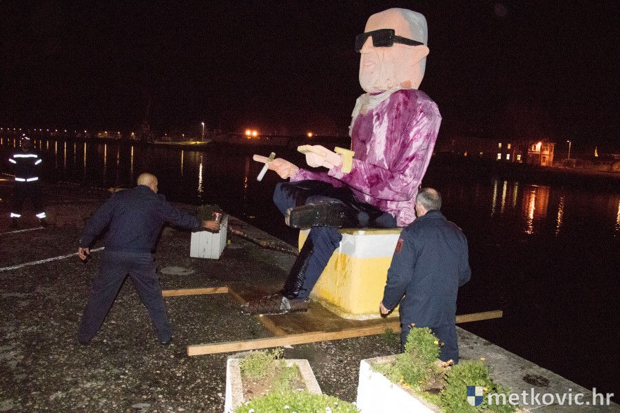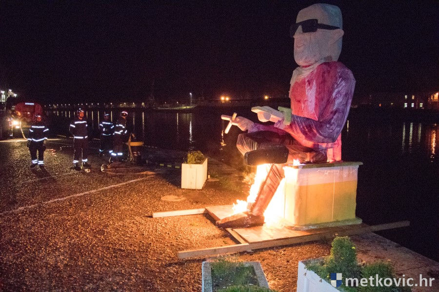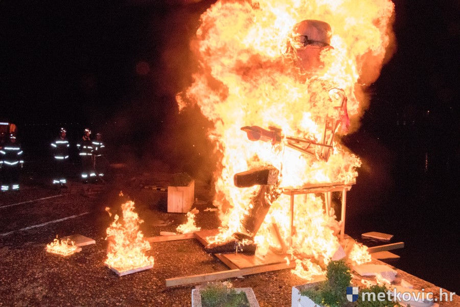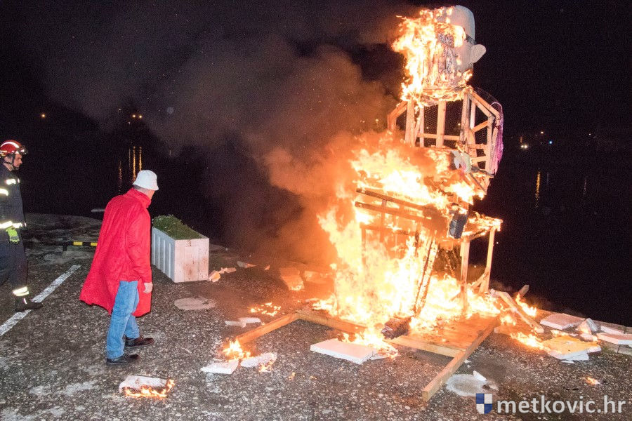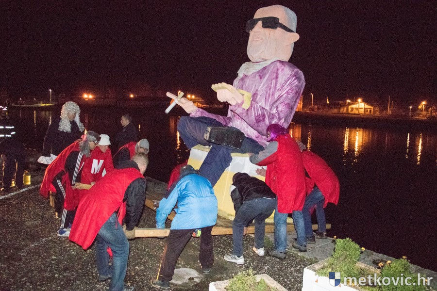 13.2.2018. - Nakon kratka, ali efikasna sudskoga procesa na Trgu kralja Tomislava, večeras je uz zvuke posmrtnoga marša na Maloj rivi u Metkoviću spaljen Marko Krnjeval i bačen u Neretvu, neka ga voda nosi.